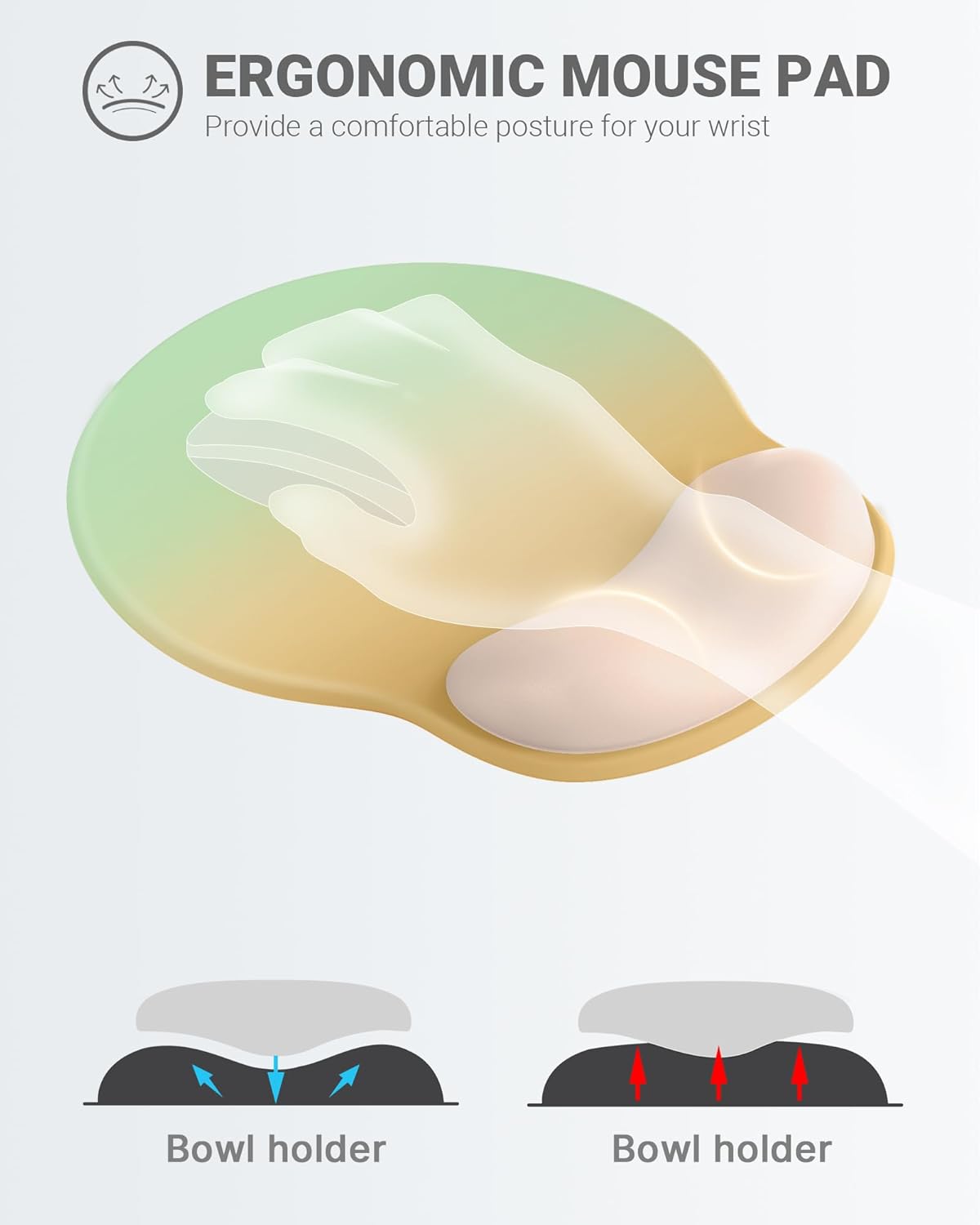 Ergonomic Mouse Pad Wrist Support, Comfortable Mouse Pad Wrist Rest, Relieve Wrist Pain Gel Mouse pad, Non-Slip Rubber Base Mousepad for Laptop, Computer(Gradient Yellow Green)