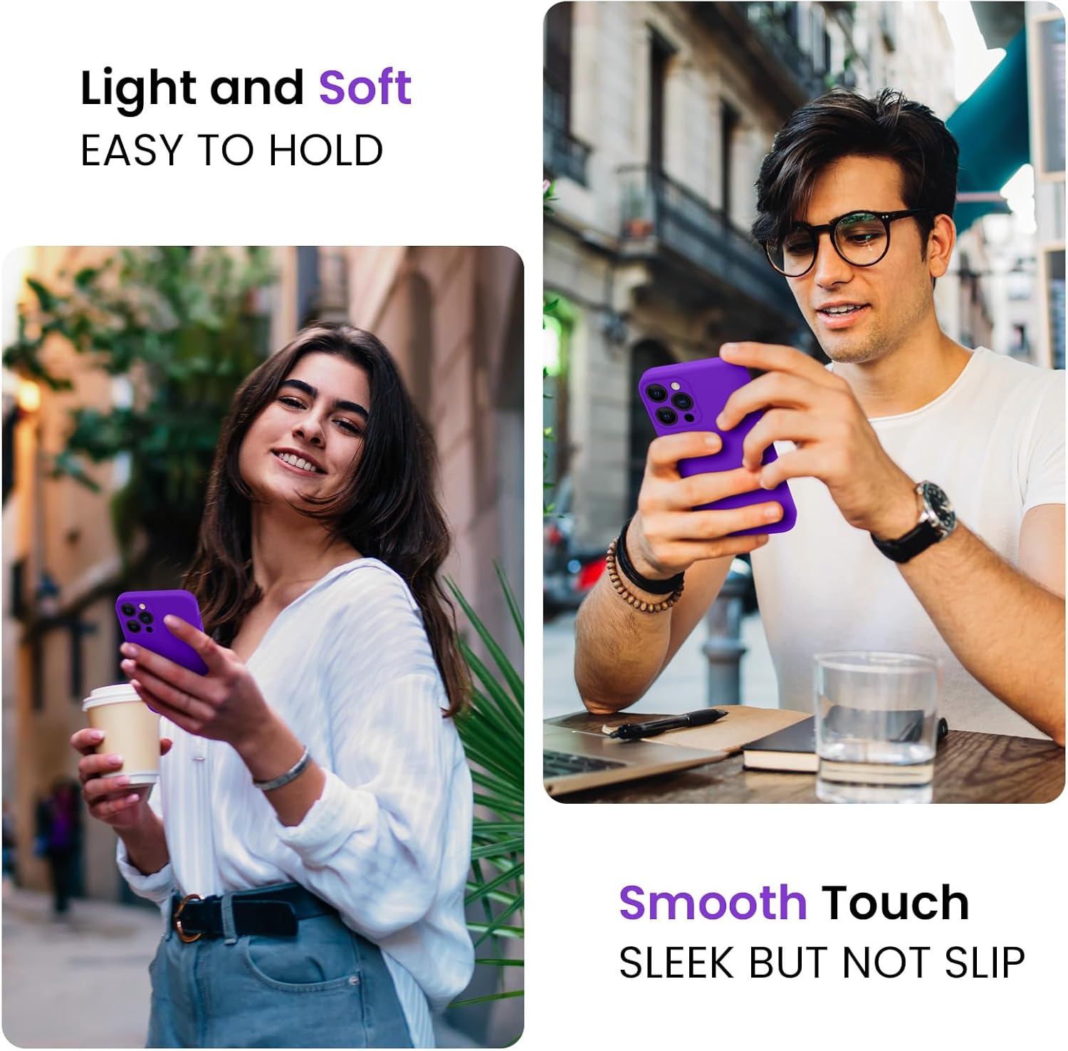 FireNova Designed for iPhone 13 Pro Max Case, Silicone [Camera Protection] Phone Case with [2 Screen Protectors], Soft Anti-Scratch Microfiber Lining Inside, 6.7 inch, Neon Purple