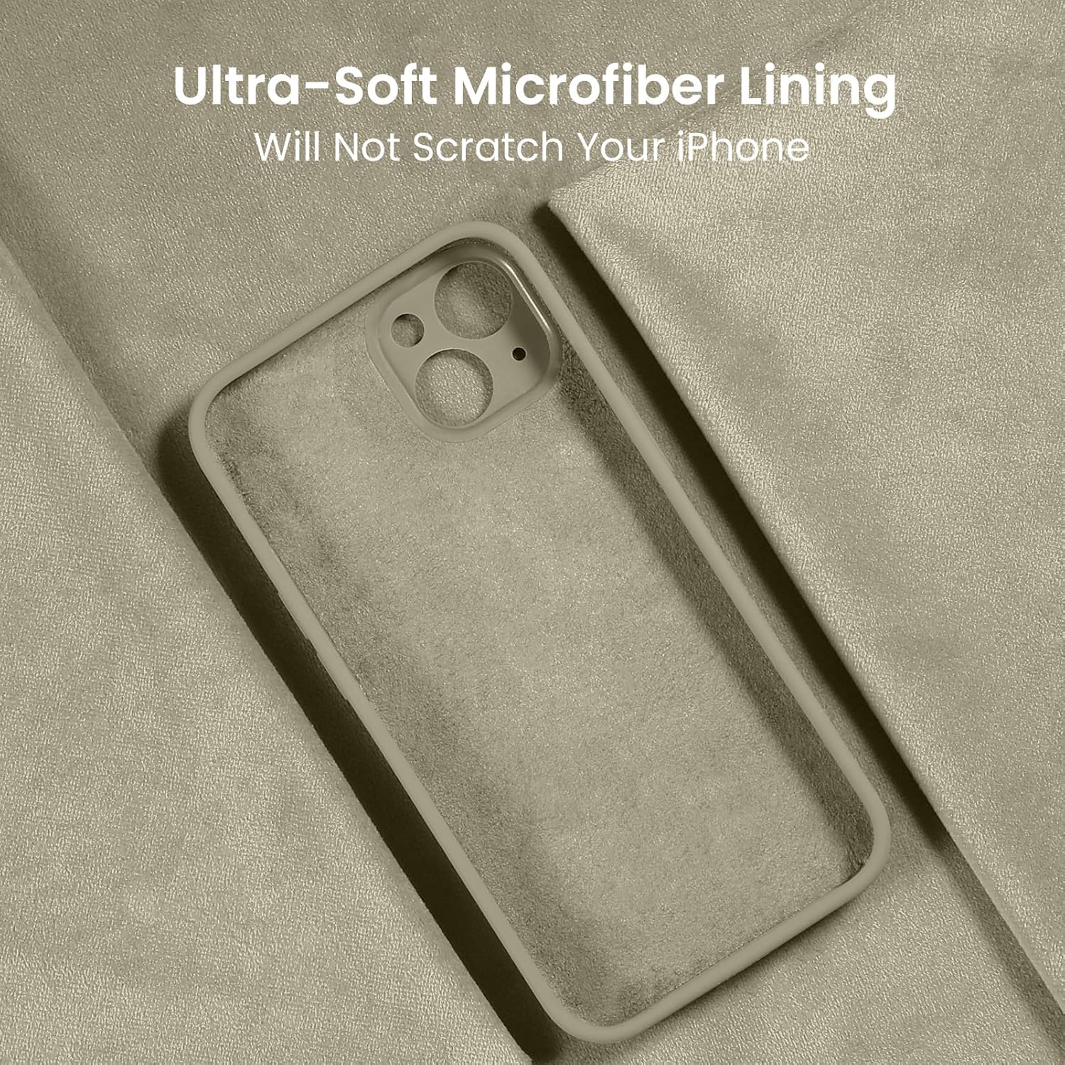FireNova Designed for iPhone 15 Case, Silicone Upgraded [Camera Protection] Phone Case with [2 Screen Protectors], Soft Anti-Scratch Microfiber Lining Inside, 6.1 inch, Khaki