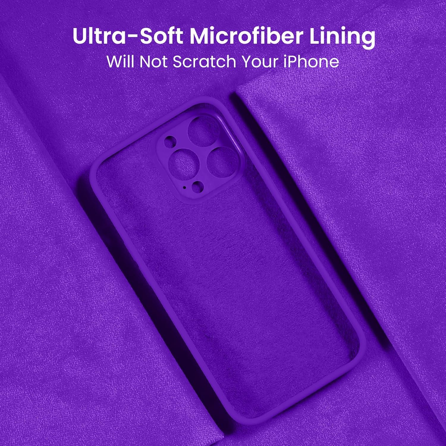 FireNova Designed for iPhone 15 Pro Max Case, Silicone Upgraded [Camera Protection] Phone Case with [2 Screen Protectors], Soft Anti-Scratch Microfiber Lining Inside, 6.7 inch, Neon Purple