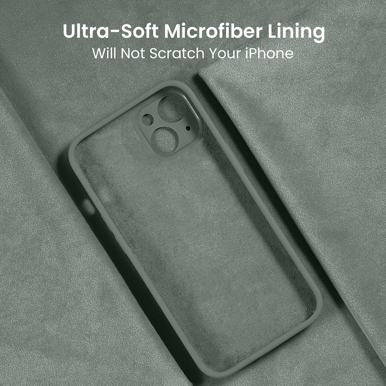 FireNova Designed for iPhone 13 Case, Silicone Upgraded [Camera Protection] Phone Case with [2 Screen Protectors], Soft Anti-Scratch Microfiber Lining Inside, 6.1 inch, Calke Green