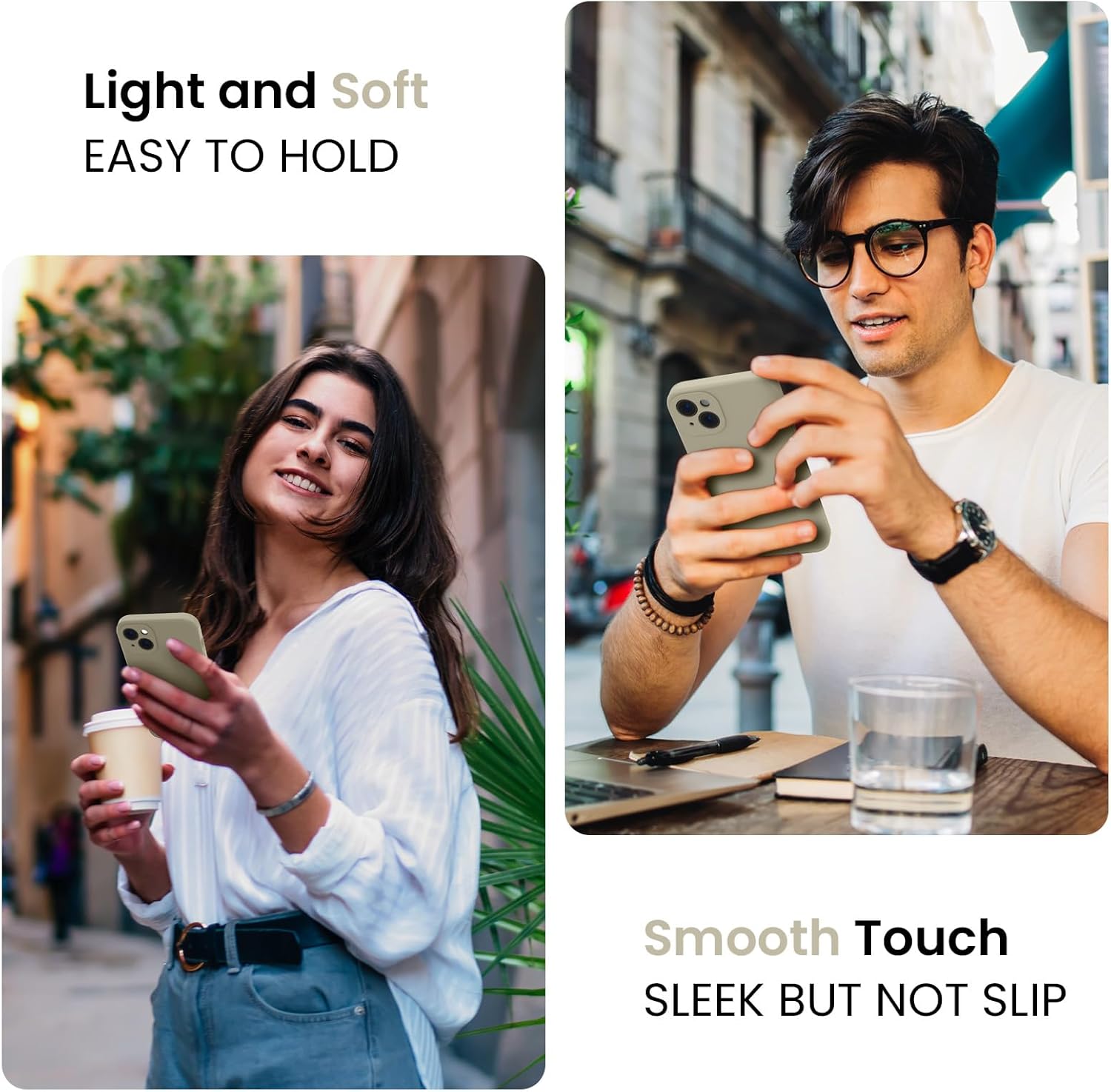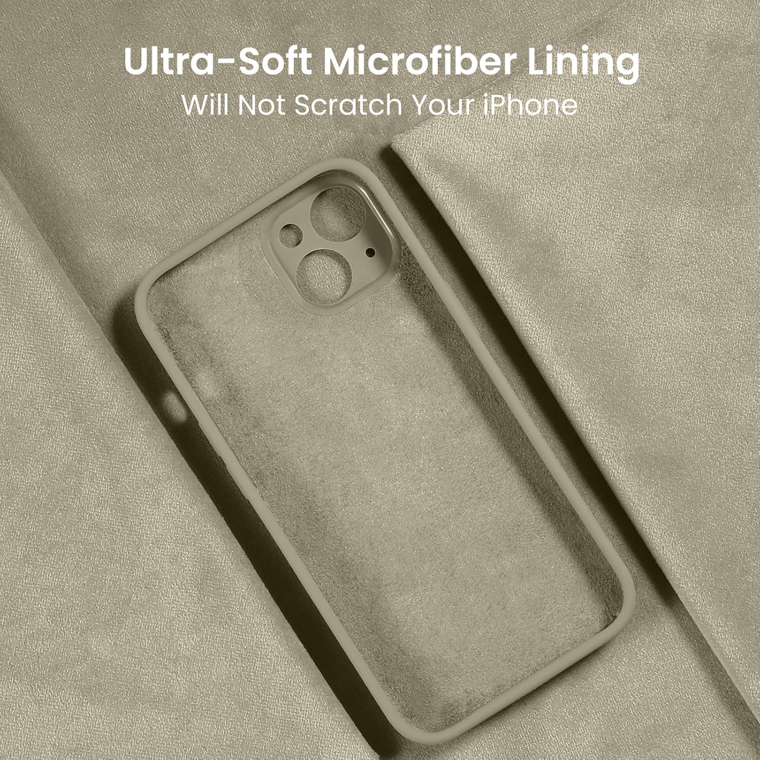 FireNova Designed for iPhone 13 Case, Silicone Upgraded [Camera Protection] Phone Case with [2 Screen Protectors], Soft Anti-Scratch Microfiber Lining Inside, 6.1 inch, Khaki