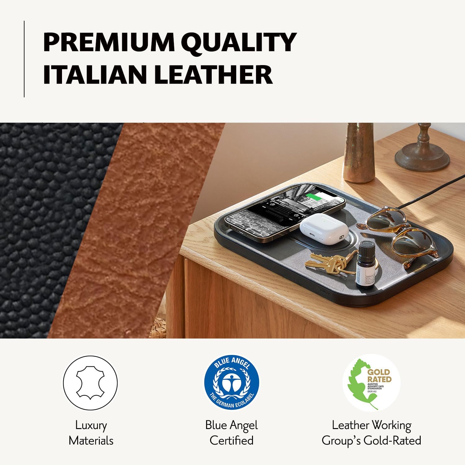 - PREMIUM, SUSTAINABLE LEATHER: Expertly crafted in curated shades of luxurious Italian leather, the MAG:3 2-in-1 charging tray matches your most-loved decor items. Perfect to blend-in or enhance decor, our premium Italian leather is the high-end designer’s leather of choice. With a "Gold-rated" and Blue Angel Certified status, it boasts the industry's highest environmental and sustainability ratings.