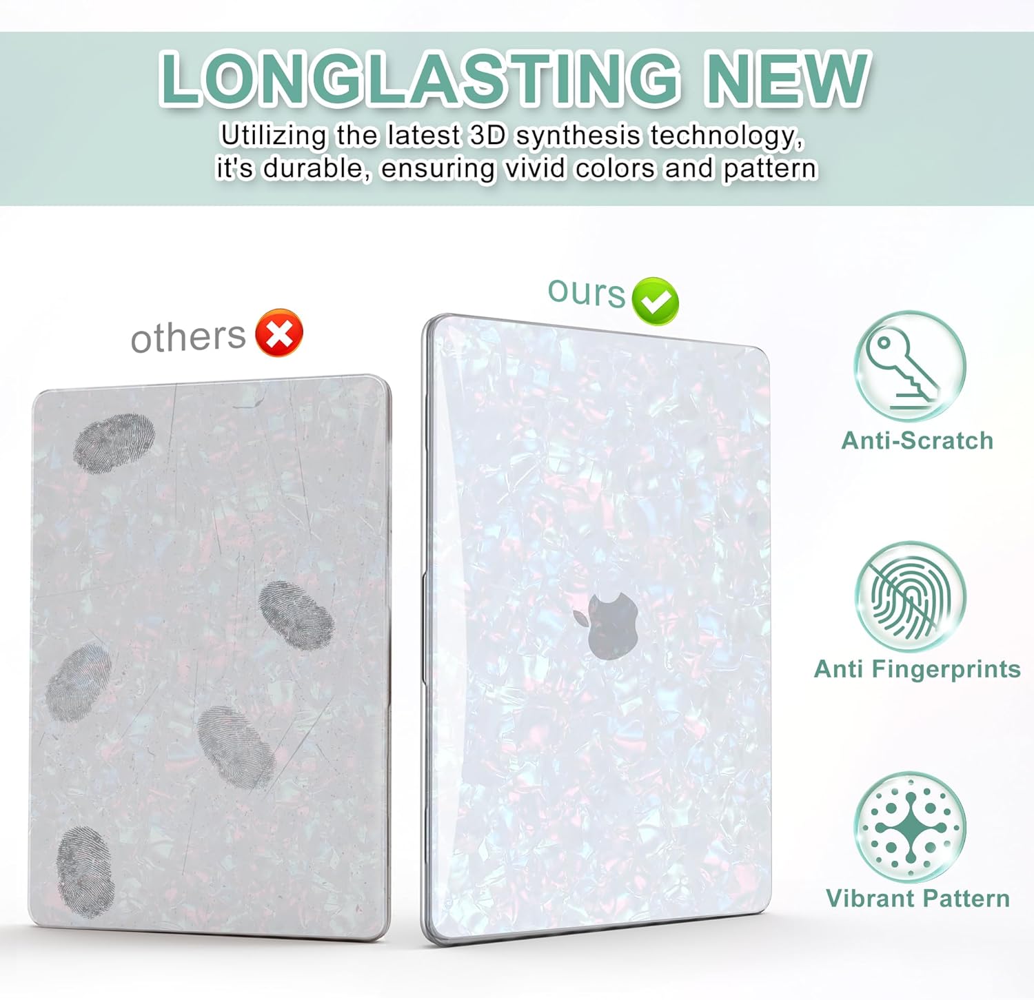 - Stunning 3D Bling Pearl Design: Our pearly luster case adopts the newest 3D In-Mold Decoration printing technology to show the most vivid glitter pearly shell pattern, ensuring that the design is not blurry or prone to color fading