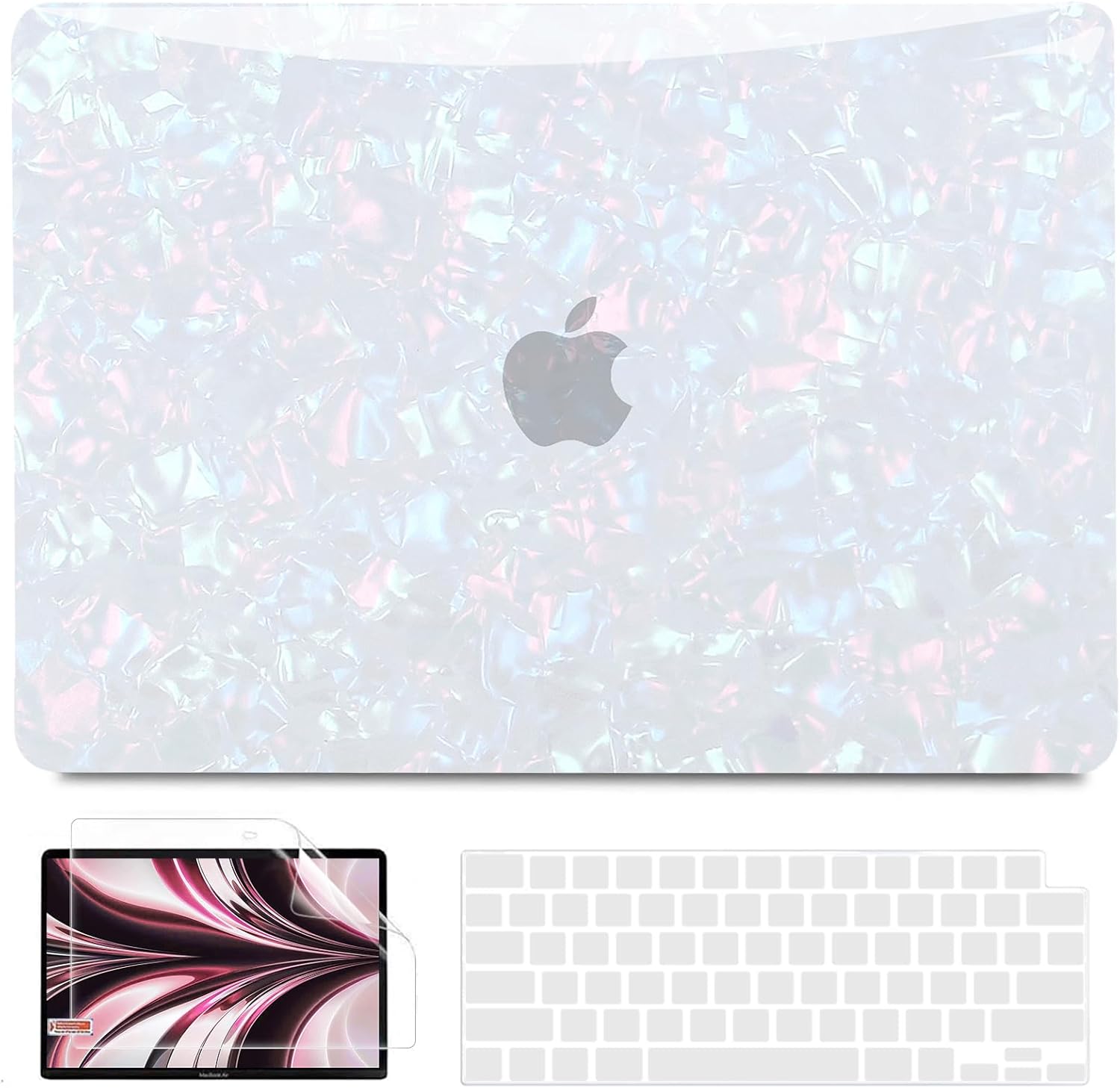 - Complete Bundle: The package includes 1 glitter pearl shell top case, 1 matte clear bottom case, 1 clear keyboard cover, and 1 screen protector. Additionally, please get in touch with us if you encounter any problems, we will work to make it right