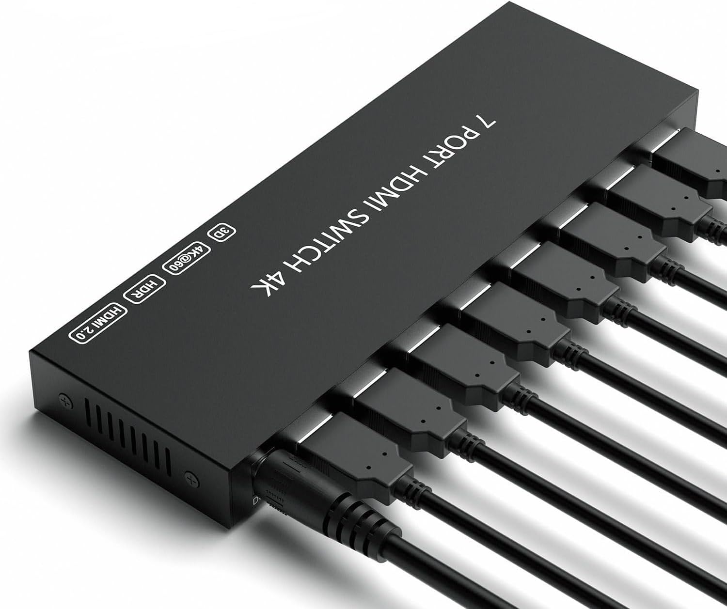 7 Way HDMI Switch 4k@60Hz HDMI Switcher 7 in 1 Out HDCP 2.0 Manual HDMI 2.0 Hub Supports 3D Compatible with Nintendo Switch/Switch OLED/Xbox/ PS5/4/3 Blu-Ray Player Fire Stick Roku Apple TV Chromeca