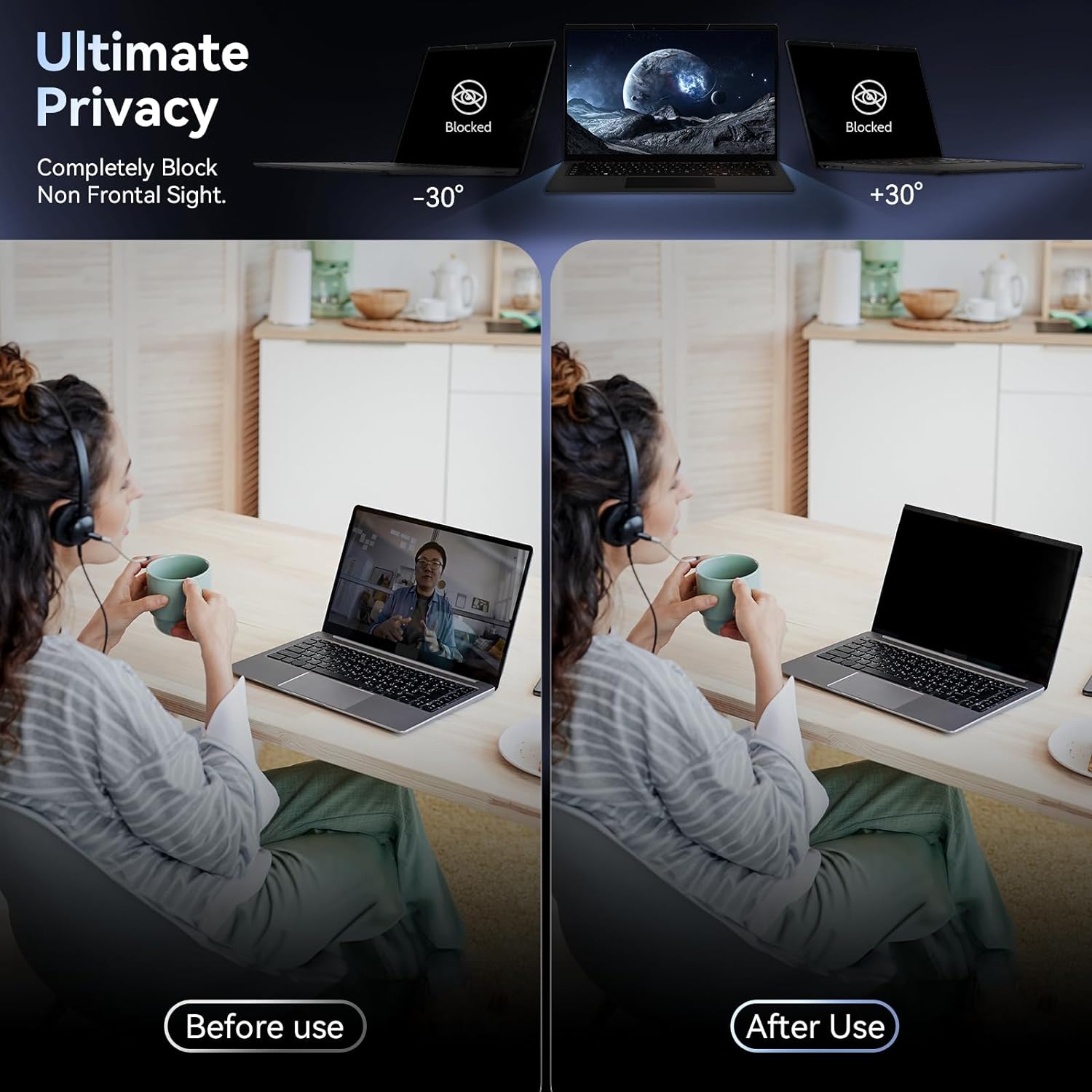 - 【Removable & Reusable】Utilizing a high-density oil-repellent layer, it is fingerprint-resistant, washable. After washing, gently dry with a nanofiber cloth. You will receive a brand new 15.6 inch privacy screen. It can be removed at any time and comes with a storage clip for the 15.6 inch privacy screen for easy storage. When you don't need it, it provides a quick and simple way to remove your laptop privacy protector.