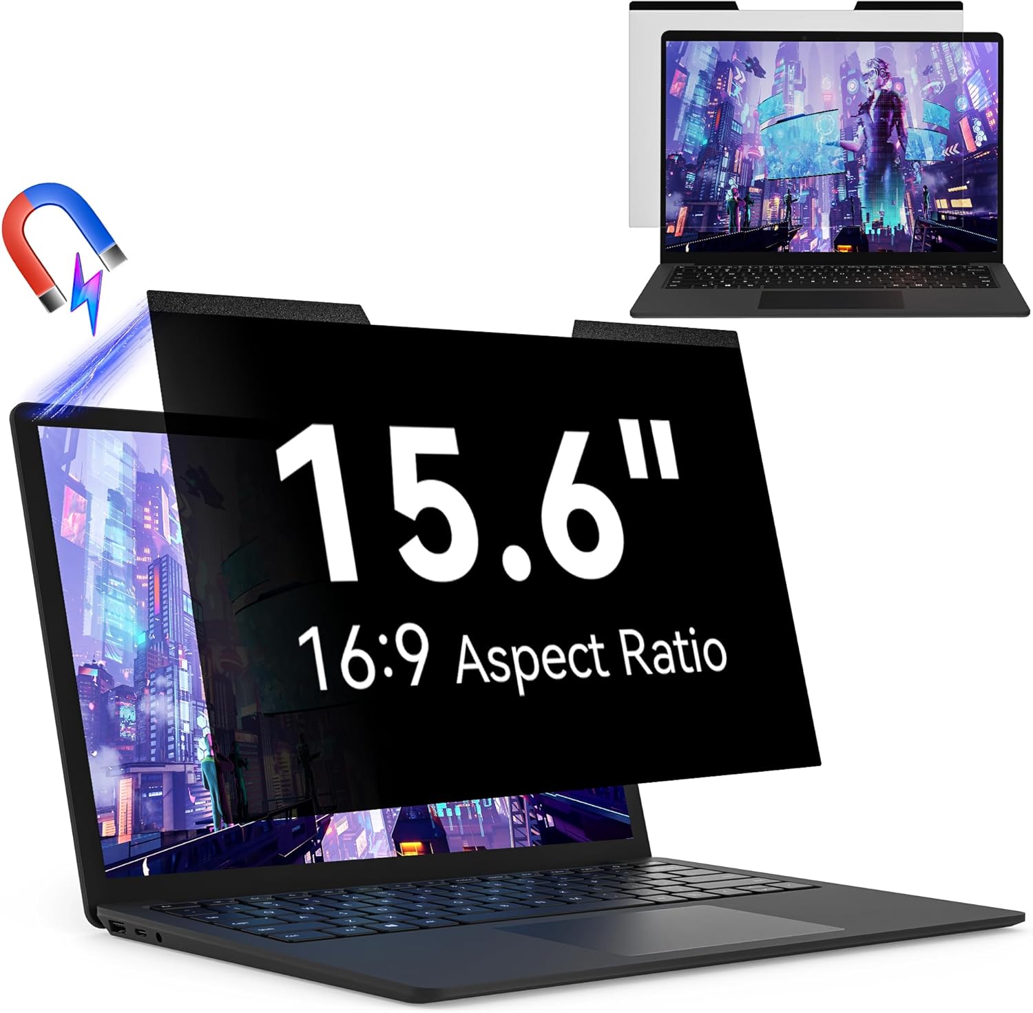 Magnetic 15.6 Inch Laptop Privacy Screen for 16:9 Computer Monitor, Removable Anti Glare Blue Light Filter Protector, 15 in Privacy Shield Compatible with Lenovo Hp Dell Acer Asus Thinkpad Envy Xps