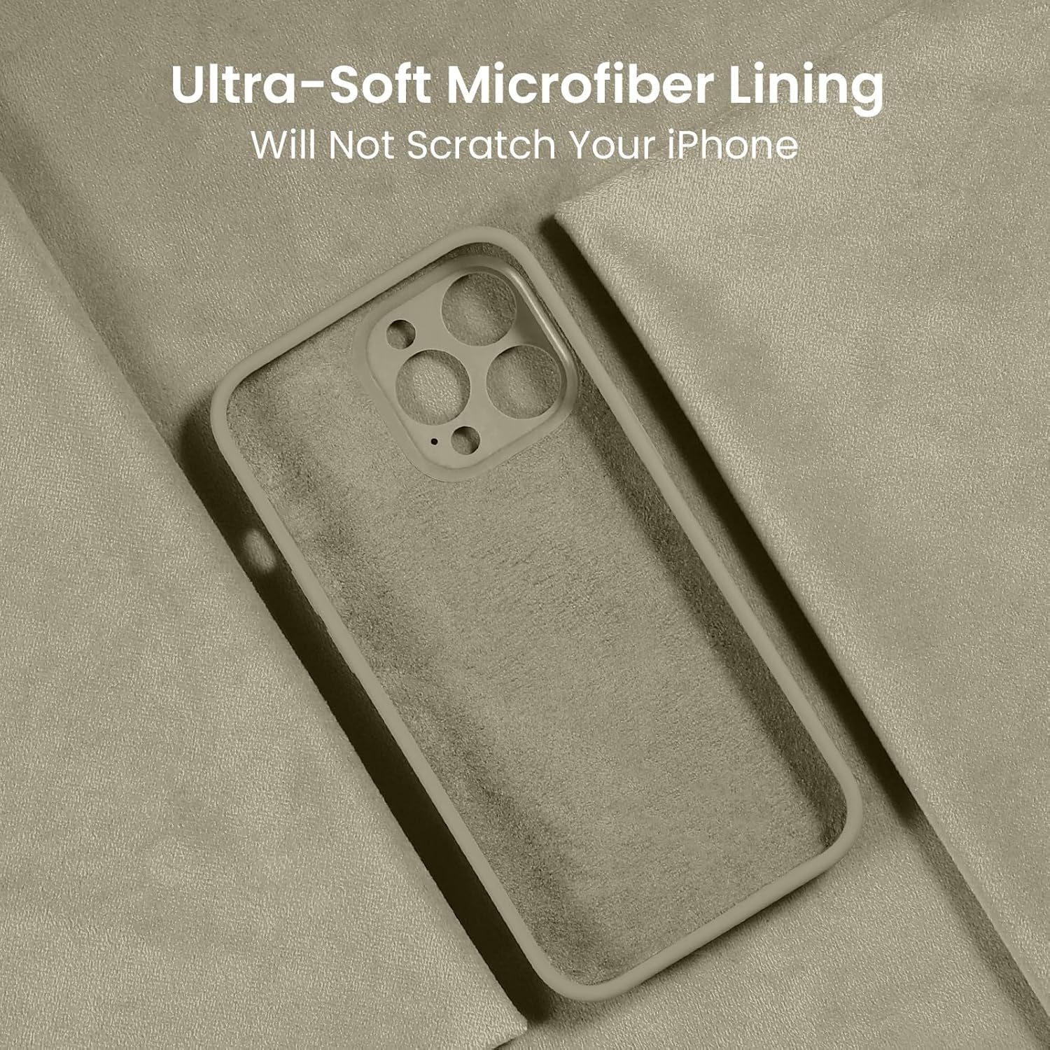 FireNova for iPhone 14 Pro Case, Silicone Upgraded [Camera Protection] Phone Case with [2 Screen Protectors], Soft Anti-Scratch Microfiber Lining Inside, 6.1 inch, Khaki