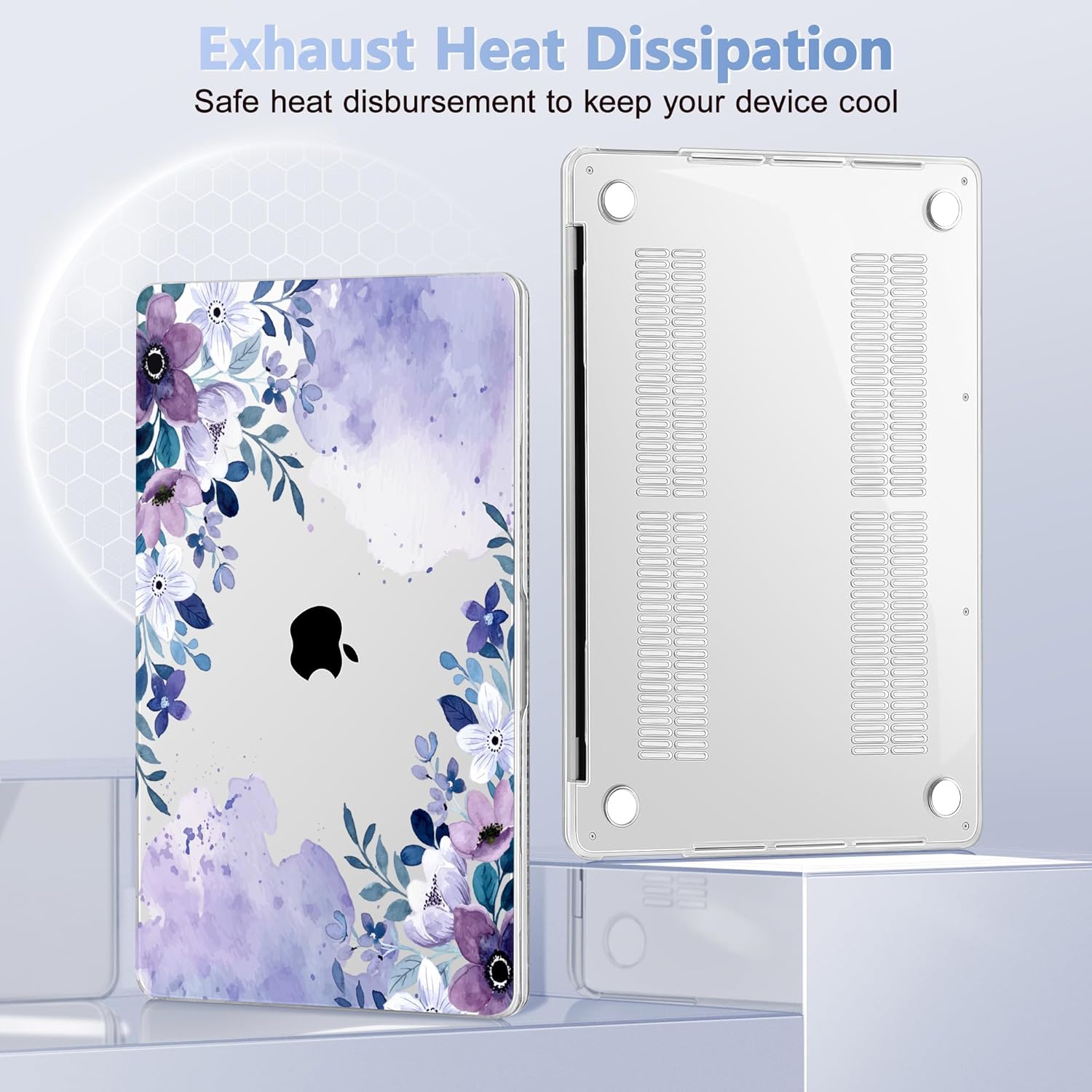 May Chen Compatible with MacBook Pro 13 inch Case 2022 2021 2020 Release Models A2338 M2 M1 A2251 A2289, Plastic Hard Shell Case for MacBook Pro 13 Inch with Touch Bar, Watercolor Purple Floral