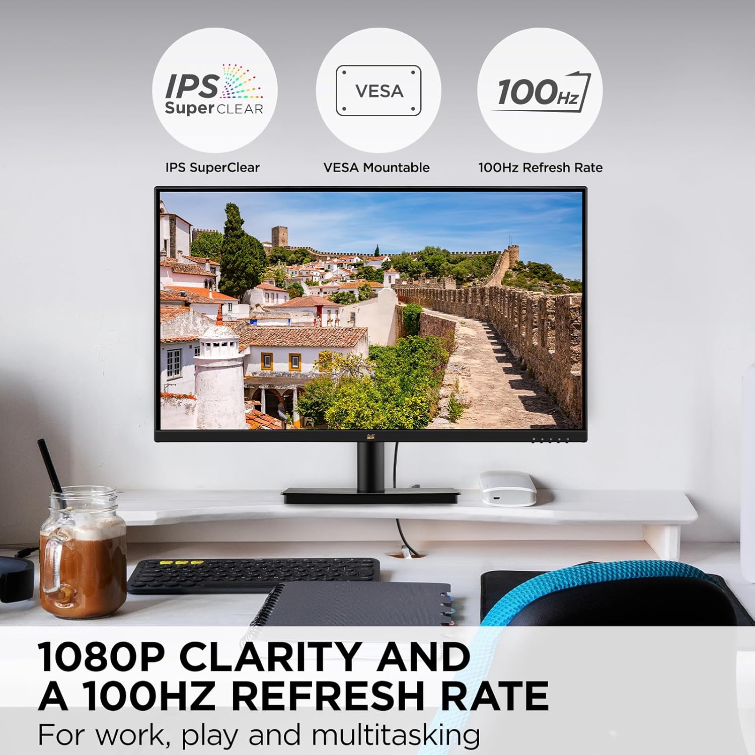 - VERSATILE MONITOR: 27 Inch Full HD (1920x1080p) IPS monitor with thin bezels and 100Hz refresh rate
