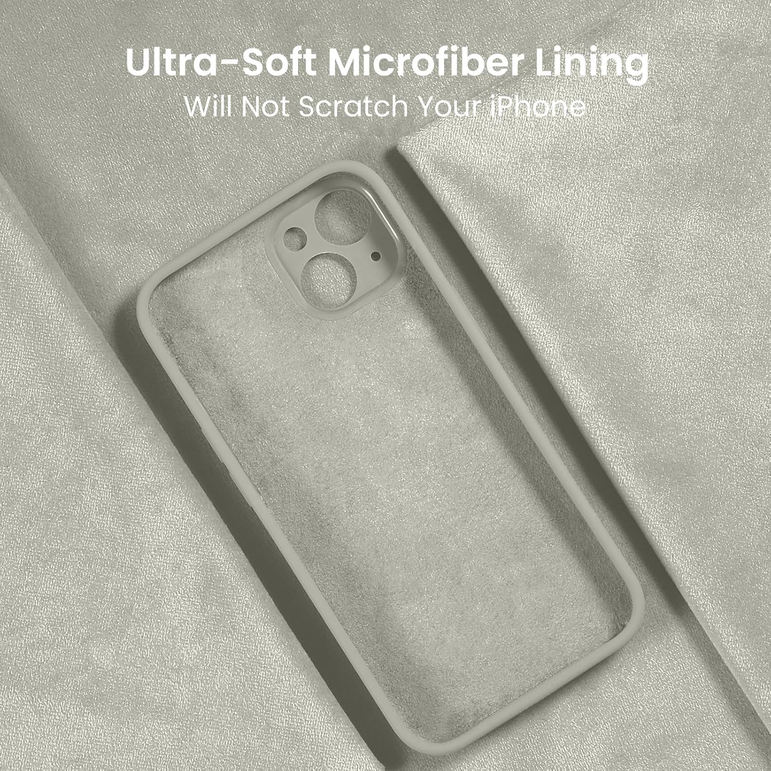 FireNova Designed for iPhone 15 Case, Silicone Upgraded [Camera Protection] Phone Case with [2 Screen Protectors], Soft Anti-Scratch Microfiber Lining Inside, 6.1 inch, Stone