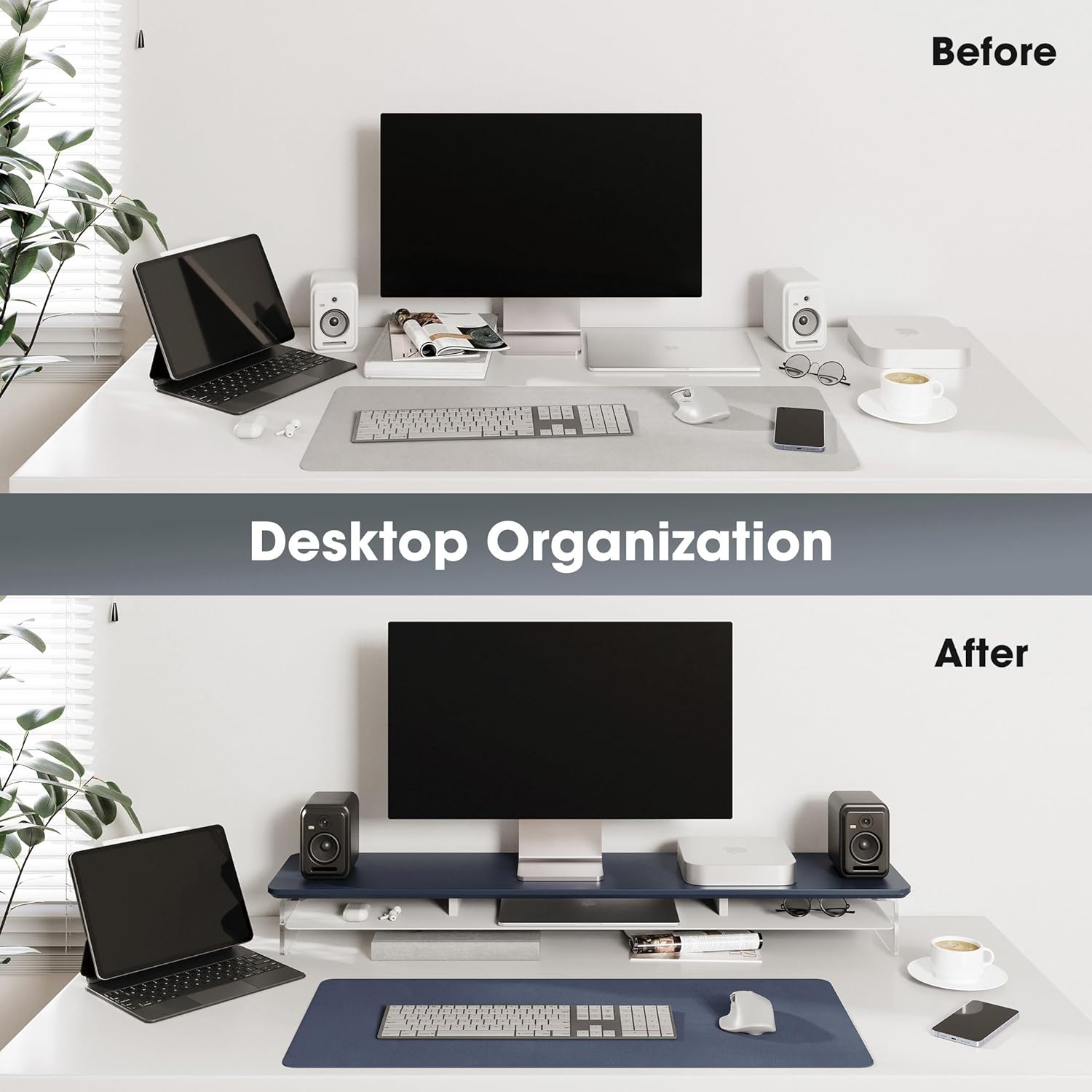 - 【Protect Your Cervical Spine & Eyes】: Acrylic monitor stand can raise your desktop by 4.7 inches to adjust to your eye level, reducing pressure on your neck and eyes.