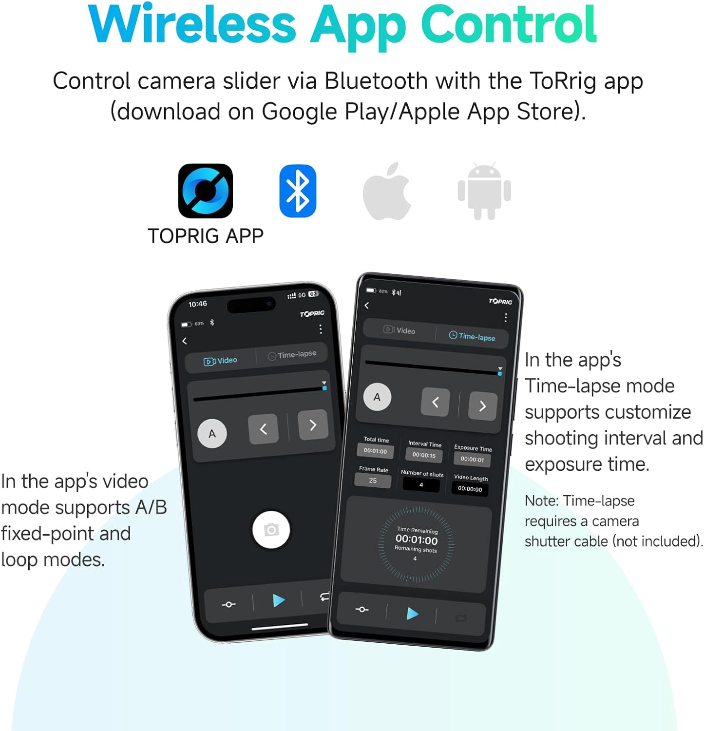 Accsoon Toprig 24inch/60cm Motorized Camera Slider, Button/APP Dual Control, Speed Adjust/Time-Lapse/120° Panoramic Shooting/Loop Mode, Compatible with DSLR Camera, Gopro, Camcorder, Smartphone(S60)