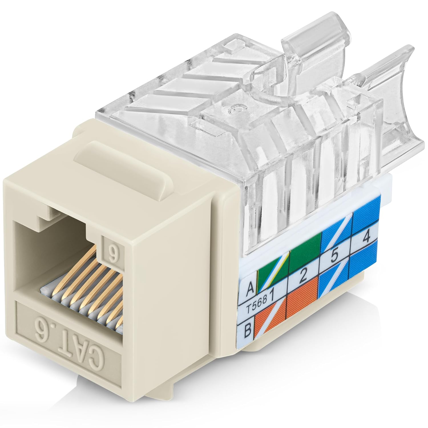 Everest 45° Angled RJ45 Cat6 Keystone Jacks 10-Pack in Ivory - Slim Profile Female RJ45 Connectors - Cat 6 Keystone Jack - Compatible with 45° Angled Speed Termination Tool - 45Term (B0BL3GS7ZY)