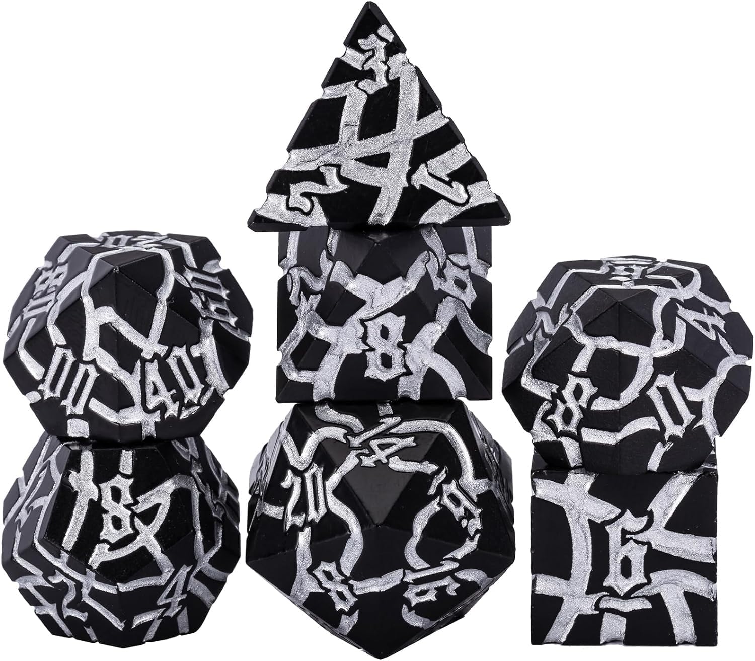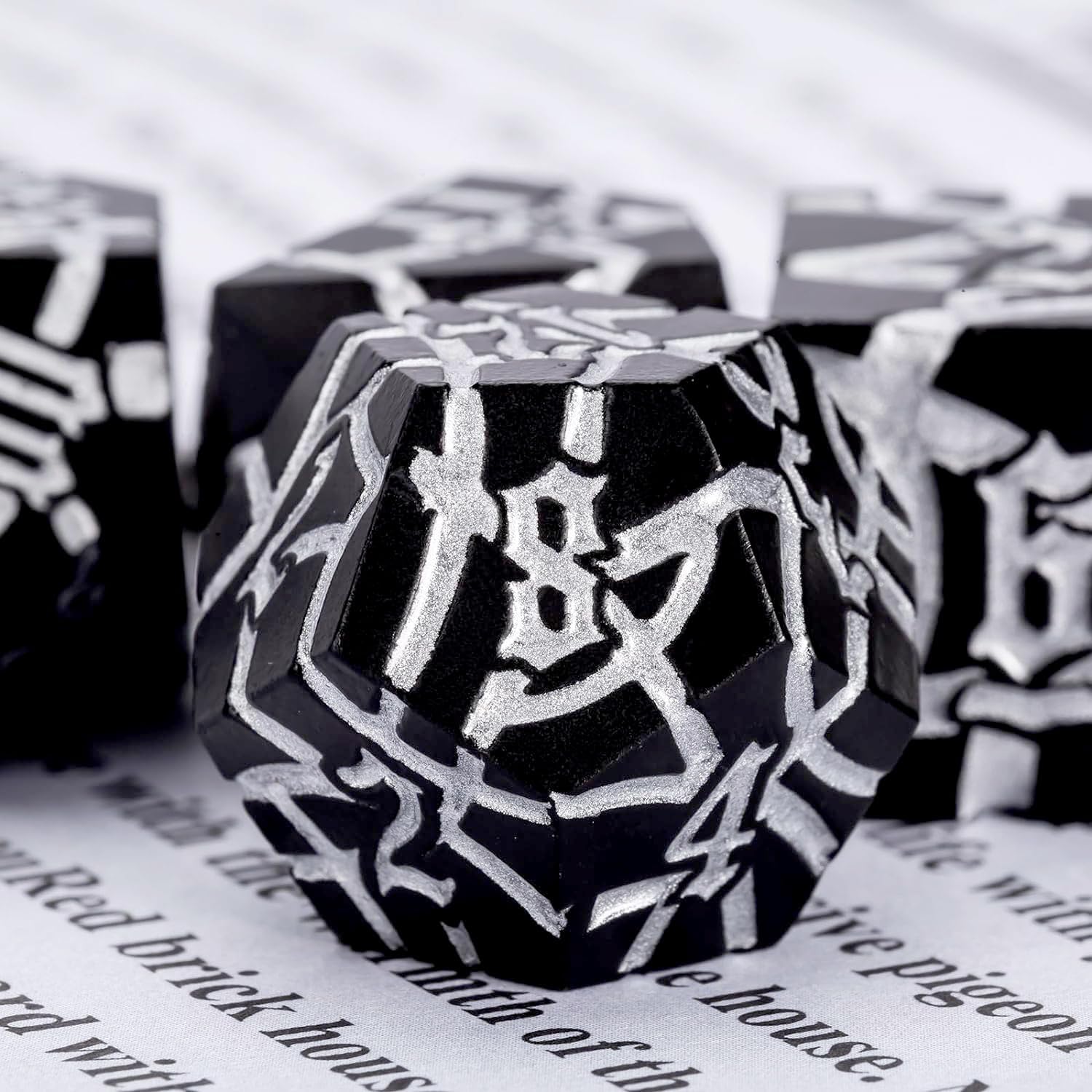 D&D Stripe Dice Set,Black Metal Dungeons and Dragons Dice Set with Box, Crack Polyhedral Dice for RPG Board Games (Matte Black Silver)