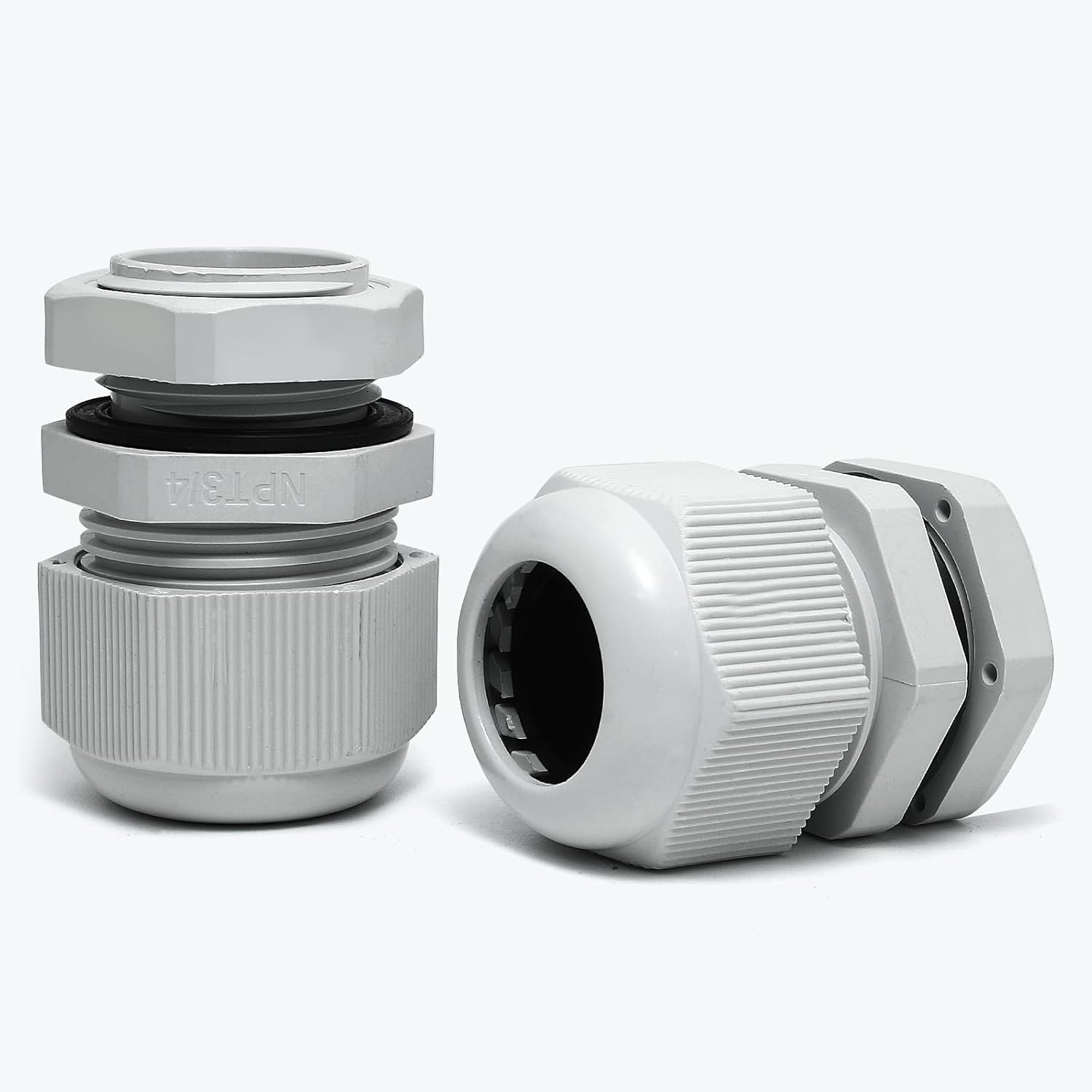 20 Pcs 3/4" NPT Nylon Cable Glands, IP68 Waterproof Adjustable Cord Grip Cable Connector Strain Relief Wire Protectors for 13-18mm Cable Diameter, Grey