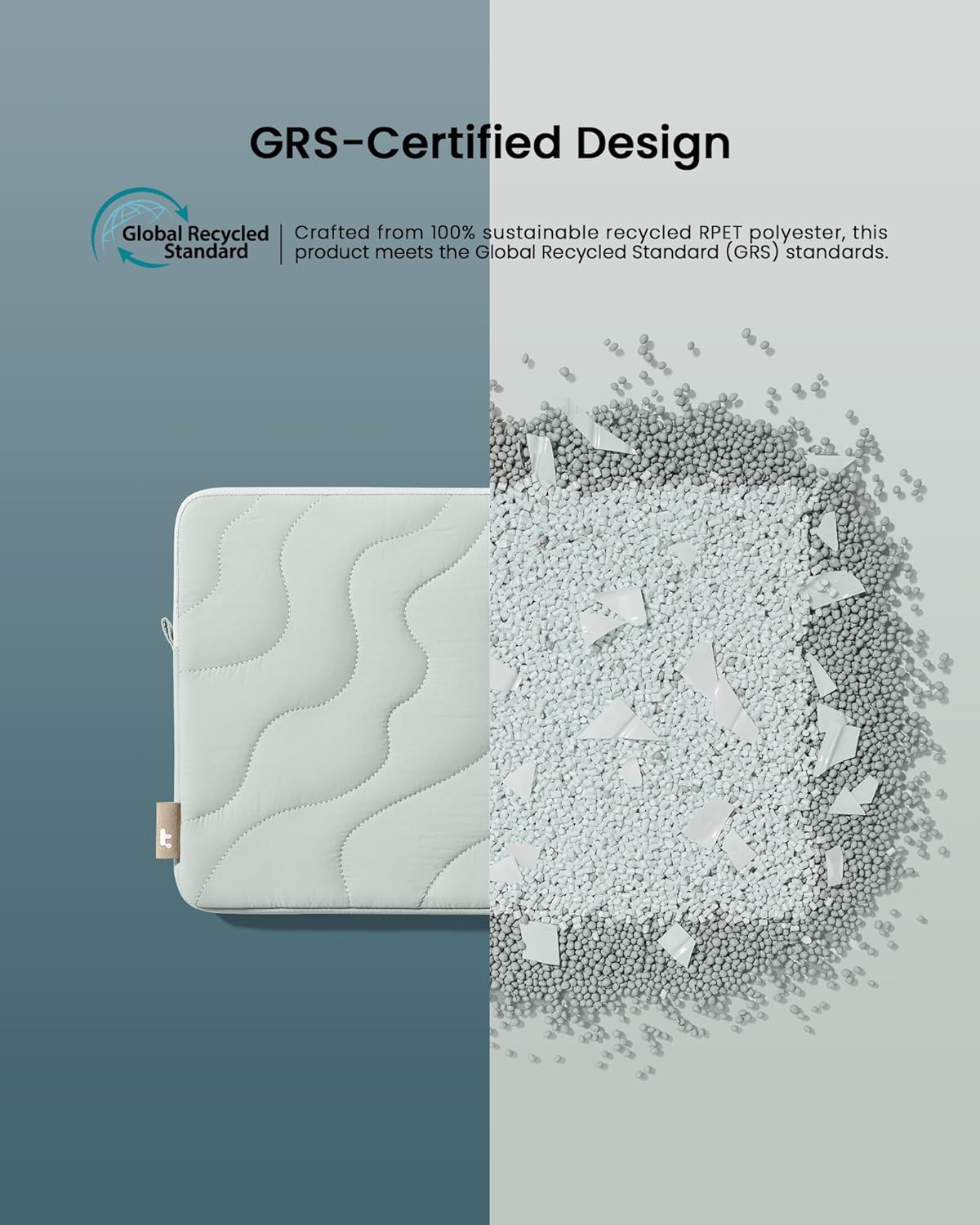 - Terra Elegance: Crafted from recycled materials, this puffer laptop sleeve combines elegance with sustainability. Its distinctive contour line design creates timeless aesthetics, perfectly tailored to embrace your cherished MacBook