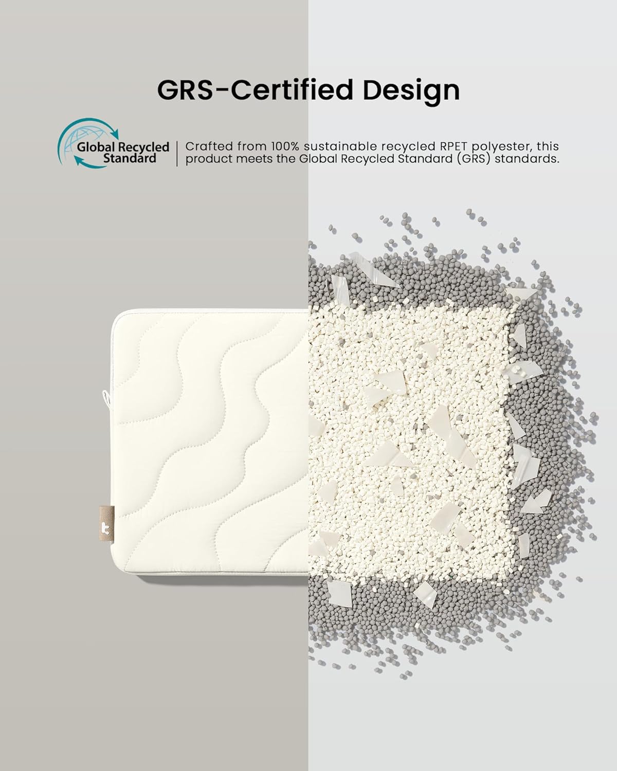 - Terra Elegance: Crafted from recycled materials, this puffer laptop sleeve combines elegance with sustainability. Its distinctive contour line design creates timeless aesthetics, perfectly tailored to embrace your cherished MacBook