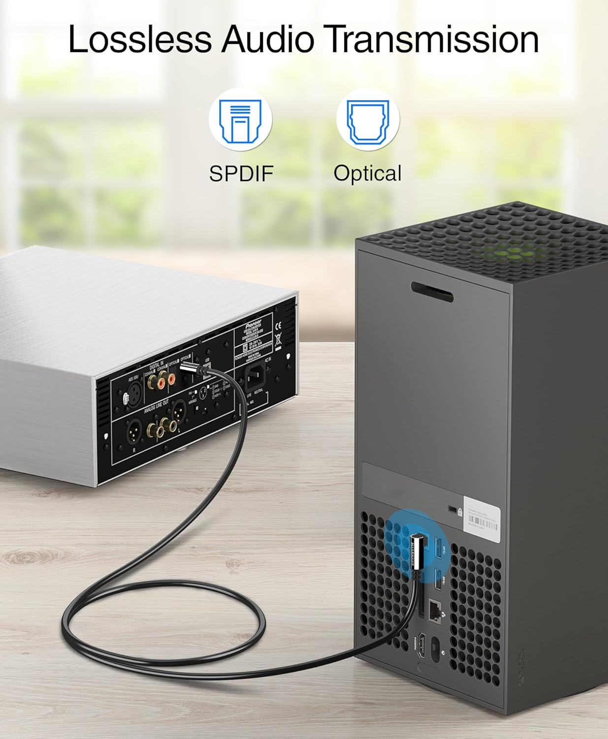 - ➤ UNIVERSAL COMPATIBILITY: BlueRigger toslink optical cable for soundbar is compatible with Soundbar, Home Theatre, HDTV, Game Consoles (Xbox, PS4 etc), Blu-Ray Player, DVR, DAC, Audio Processor, Receiver/Preamp etc. Compatible with Toslink, S/PDIF and optical ports
