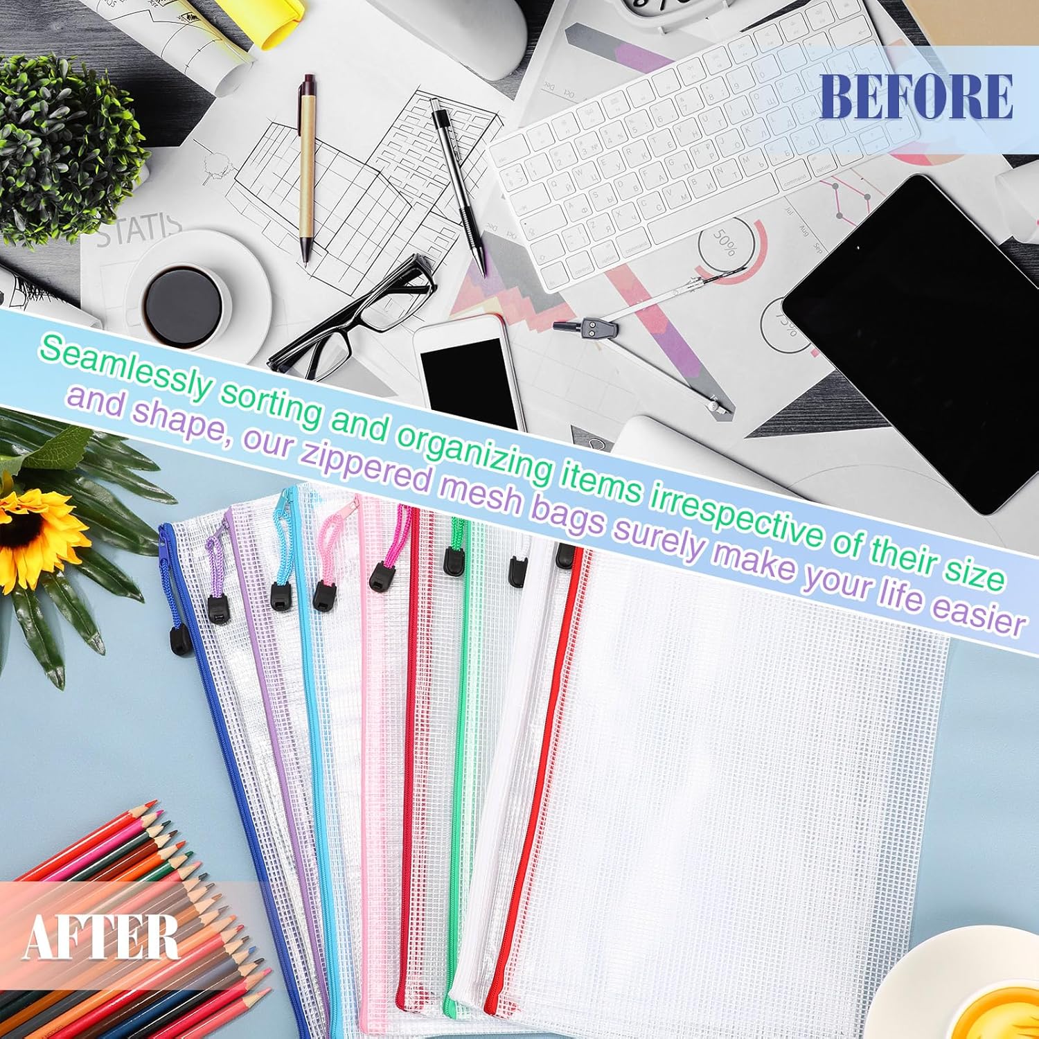 - Wide Application: the waterproof pouch is essential for home, classroom, office, and travel uses, which can help organize books, bills, photos, cosmetics, loose puzzles, and games with absolute ease; Seamlessly sorting and organizing items irrespective of their size and shape, our zippered mesh bags surely make your life easier