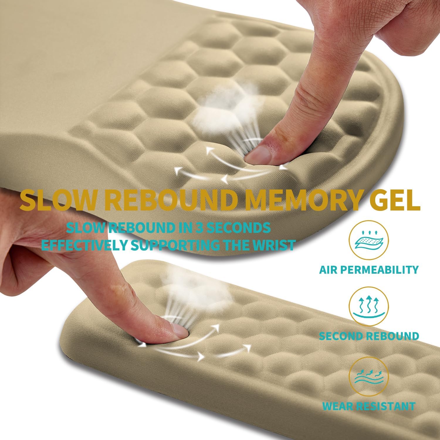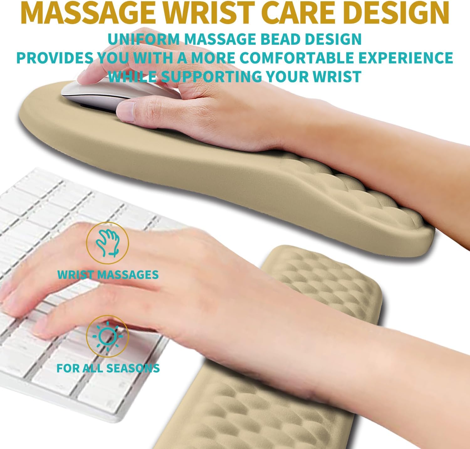 Hokafenle 2 in 1 Ergonomic Mouse Pad Wrist Support & Wrist Rest for Computer Keyboard Set, with Relieve Carpal Tunnel Pain Massage Bulge and Full Memory Gel Design (2In1 Set, Beige)