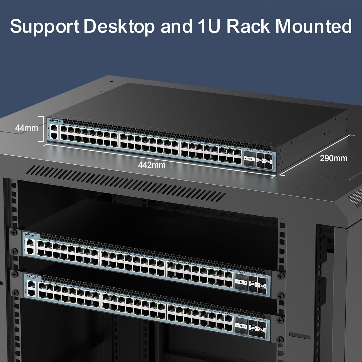 SODOLA 48 Port 2.5GbE Switch,L3 Managed e-Sports Mega-Switch with 4 x 40 QSFP+,4 x 25G SFP28,MLAG/Overlay/SDN, 96W, Multi-Gig Smart Web Managed Switch