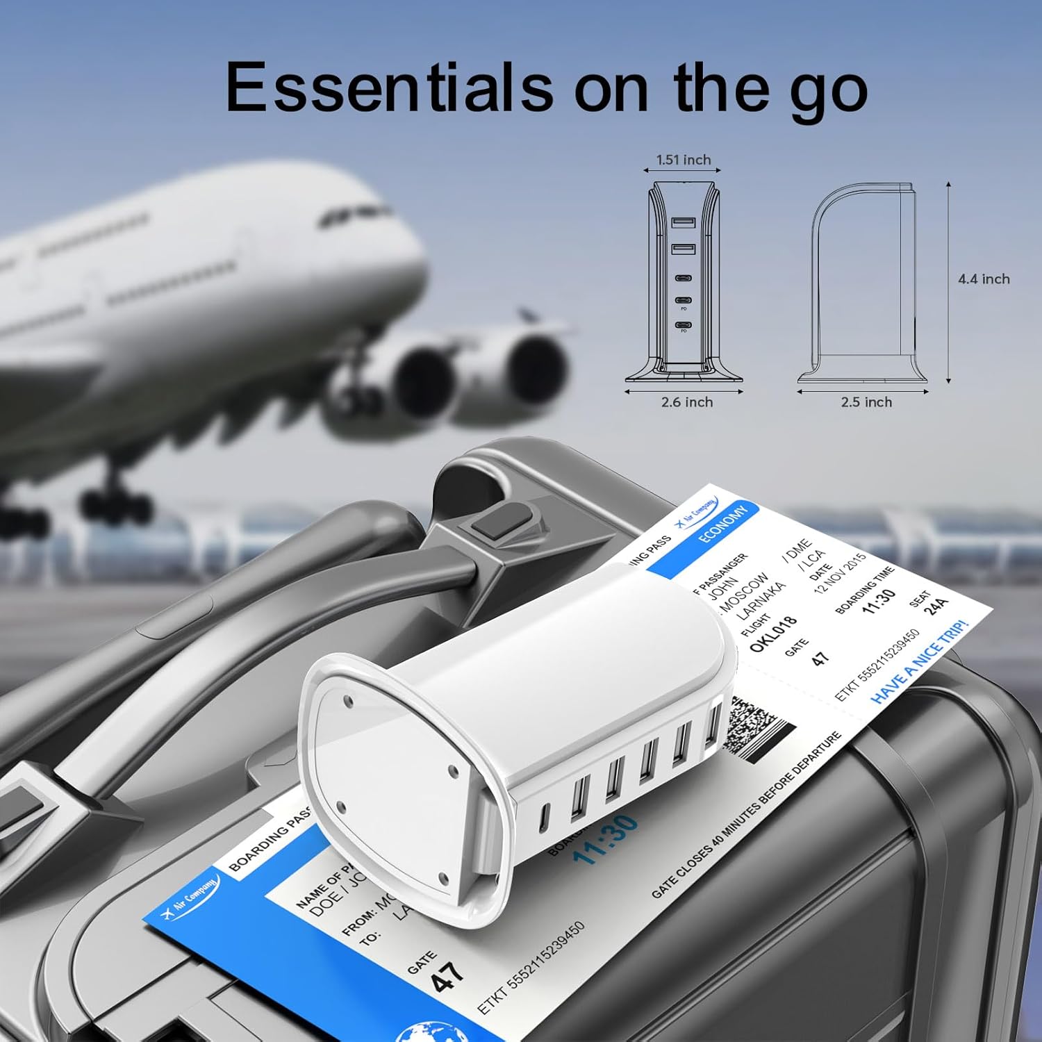 - USB tower higher-efficiency: 6 ports powerful charging, meet all your charging needs for Android/IOS devices and get rid of superfluous power blocks.