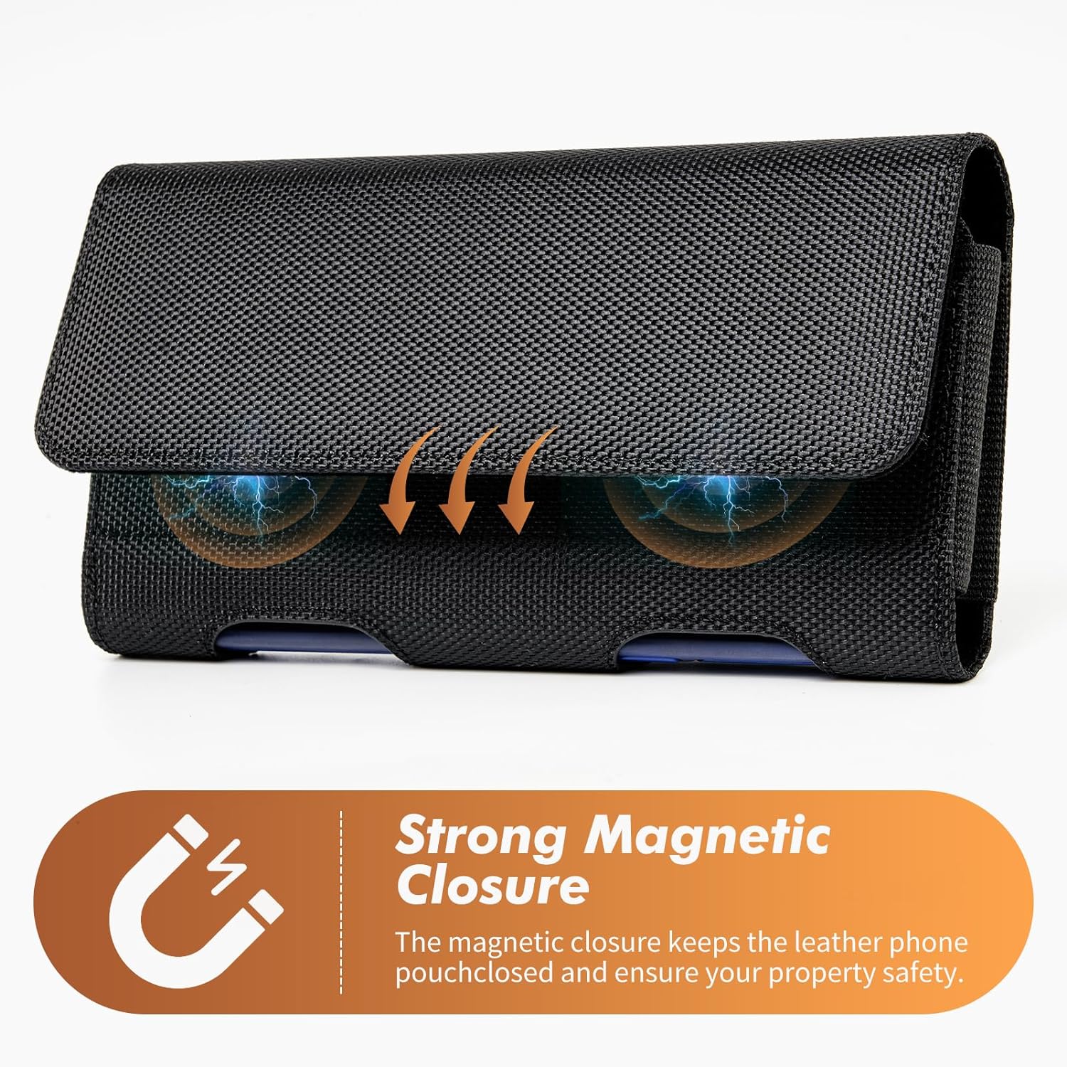 - Durable metal belt clip + 2 additional belt loops for extra security + magnetic closure. Card / ID / Cash Holder Slot - Soft inner lining helps protecting your new phone from scratches
