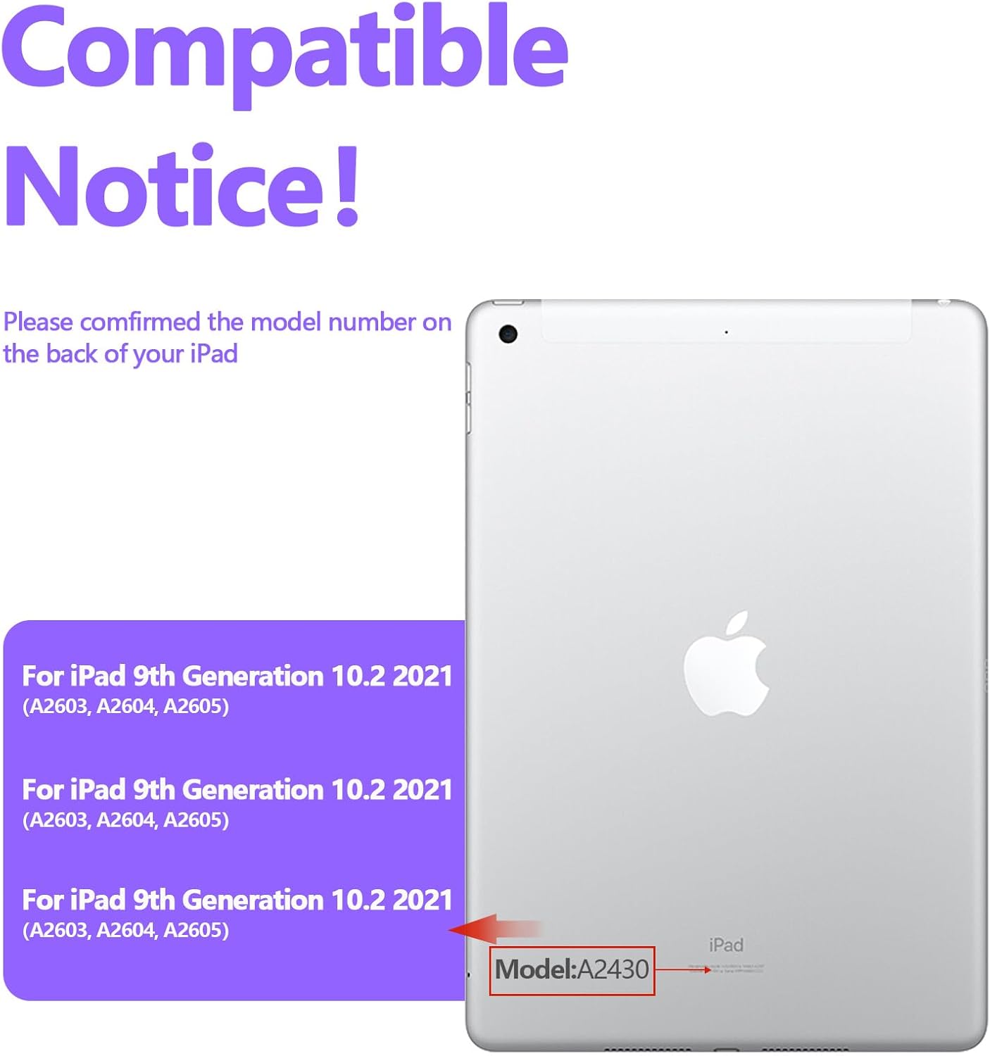 - Compatible Devices : For iPad 9th Generation 10.2 2021-A2603, A2604, A2605, For iPad 7th generation 10.2 inch 2019-A2199, A2197, A2200, A2198,For iPad 8th Generation 10.2 inch 2020-A2430, A2270, A2428, A2429; For iPad 9th Generation 10.2 2021-A2603, A2604, A2605, For iPad 7th generation 10.2 inch 2019-A2199, A2197, A2200, A2198,For iPad 8th Generation 10.2 inch 2020-A2430, A2270, A2428, A2429;