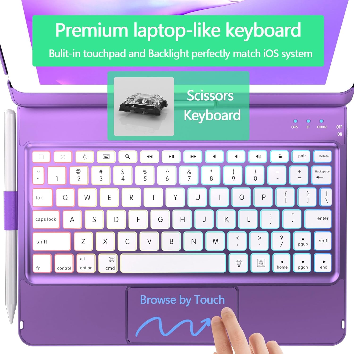 - ✅【Touch Keyboard for ipad 9th Generation/8th Gen/7th Gen 】Integrated multi-touch trackpad with plentiful trackpad gestures,you can turn your tablet into a highly performant and easy to use laptop!Like swipe and scroll to navigate iPad 10.2 even faster, that opens up new ways to work with your ipad. Delivering a comfortable user experience while allowing you to click and swipe through content effortlessly.