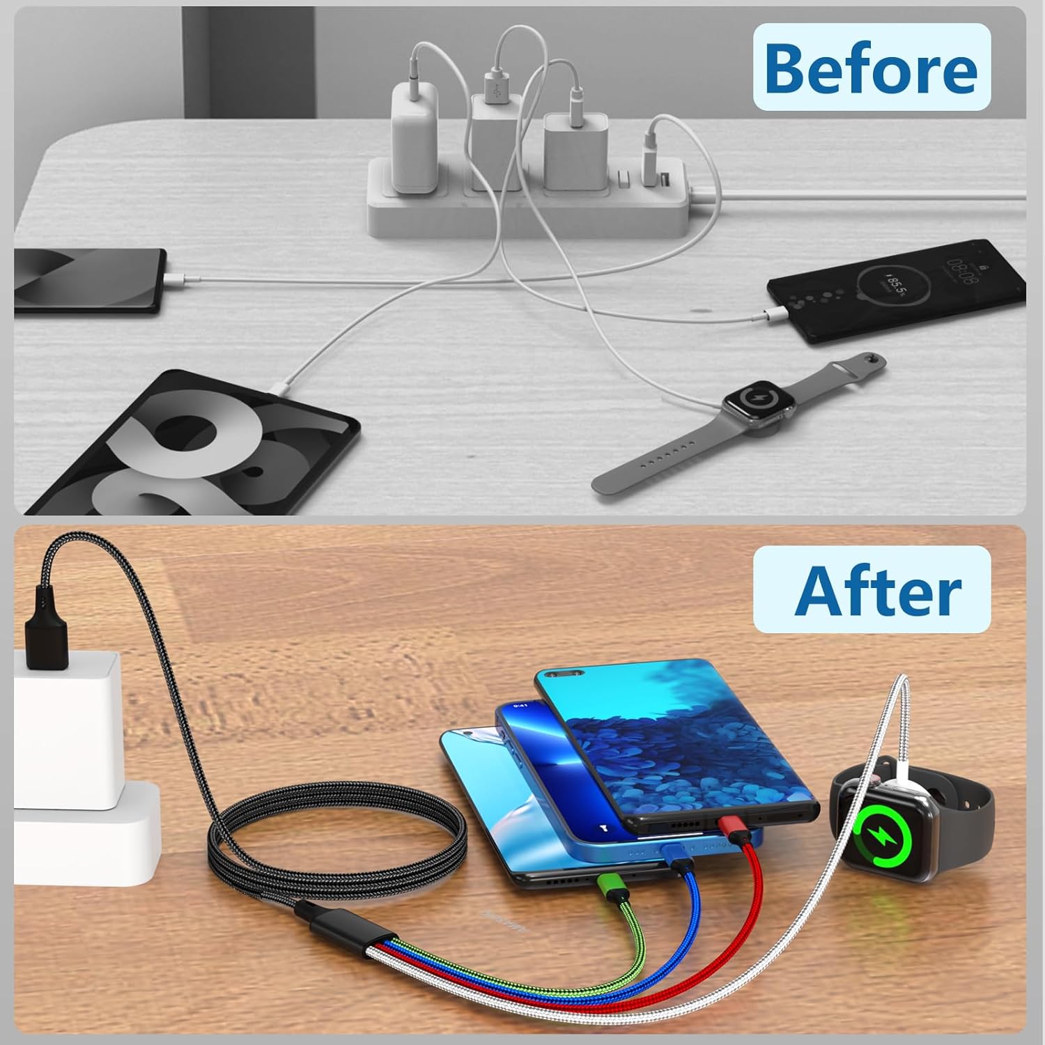 - ❥【Universal Compatibility】Multi USB cable is compatible with iPhone 16/15; iWatch series Ultra/10/9/8/7/6/SE2/SE/5/4/3/2/1; Samsung Galaxy S7/S6/S4 most Android phones & Wireless Accessories;Samsung Galaxy S10+/S10S9/S9+/S8/S7,Huawei,HTC,SONY,Moto.Support to charger most of the mobile devices available on market