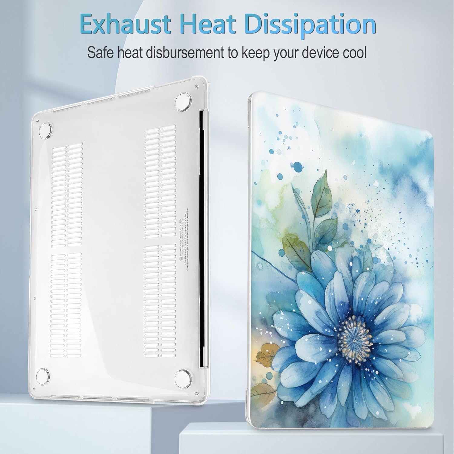 Mektron Designed Case for MacBook Pro 16 Inch A2141 Cover 2019 Release 16" with Liquid Retina Display/Touch ID, Plastic Hard Shell with Keyboard Skin & Screen Protector, Watercolor Blue Flower