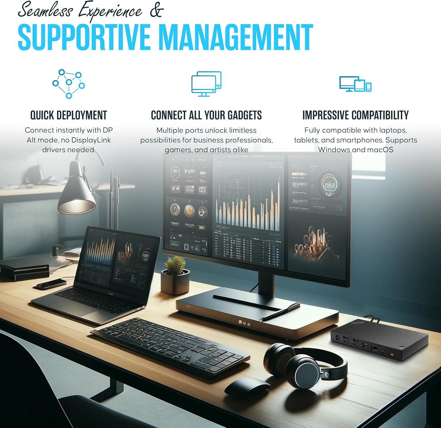 - [Universal Docking for Enterprise Excellence] Seamlessly Compatibility Across a Diverse Range of Laptops