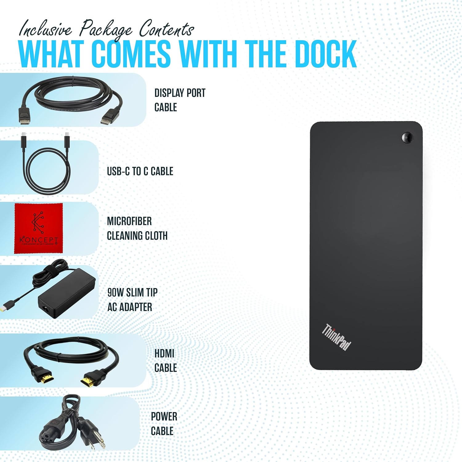 - [Package Includes] - Lenovo Dock Station 40AS0090US, Original Lenovo 90, 1x HDMI Cable, 1x Displayport Cable, USB C Cable, Microfiber Cleaning Cloth.