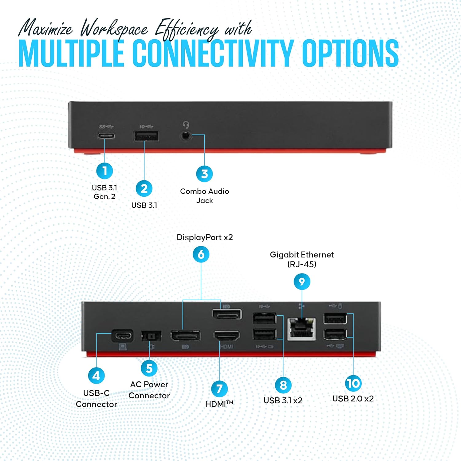 40AS0090US Lenovo Thinkpad Docking Station USB-C Gen 2-1 Year Warranty - Thinkpad Thunderbolt 3 Dock, HDMI, DisplayPort & USB C Cable - Universal Docking Station (Renewed)