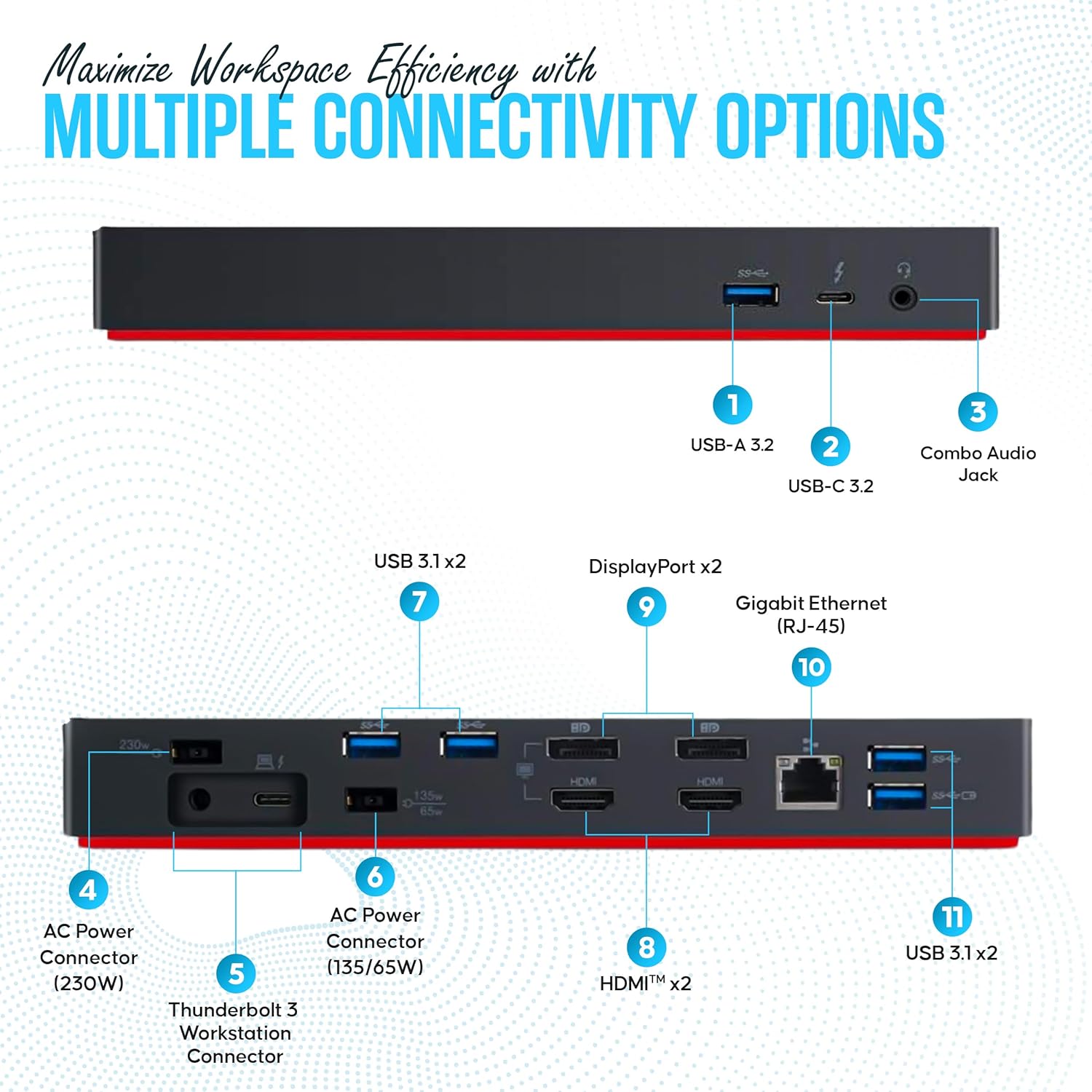 - [Secure and Reliable] Purchase this workstation accessory with confidence! We include a no-frills, no-questions-asked return policy for our 40AN0135US lenovo thunderbolt 3 dock for up to 30 days.
