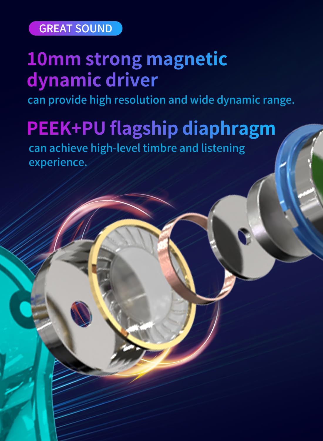 - Most Musicians’Choice: Kbear Storm in ear monitor headphones adopts 10mm strong magnetic dynamic driver&PEEK+PU composite diaphragm.10mm strong magnetic dynamic driver can provide high resolution and wide dynamic range.PEEK+PU flagship diaphragm can achieve high-level timbre and listening experience.Let you get an excellent experience in the ocean of music.