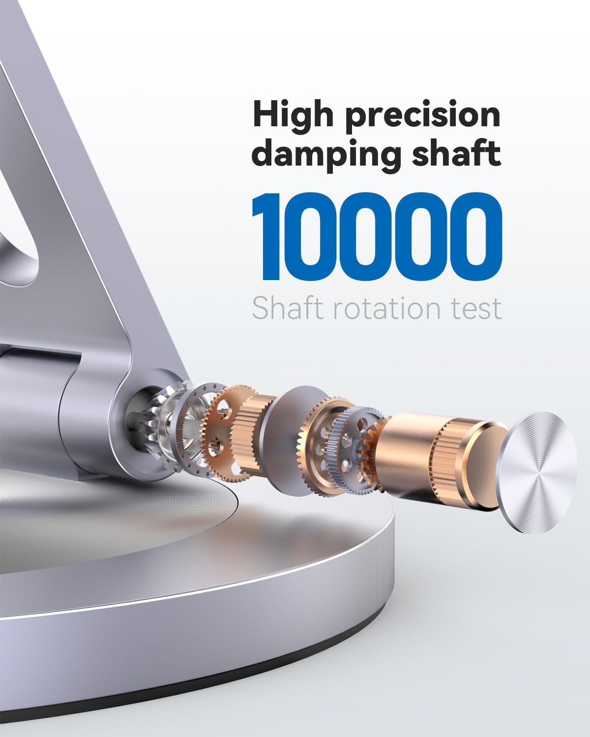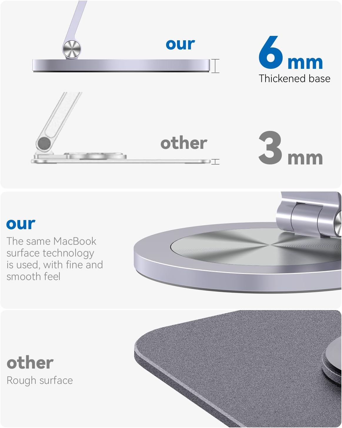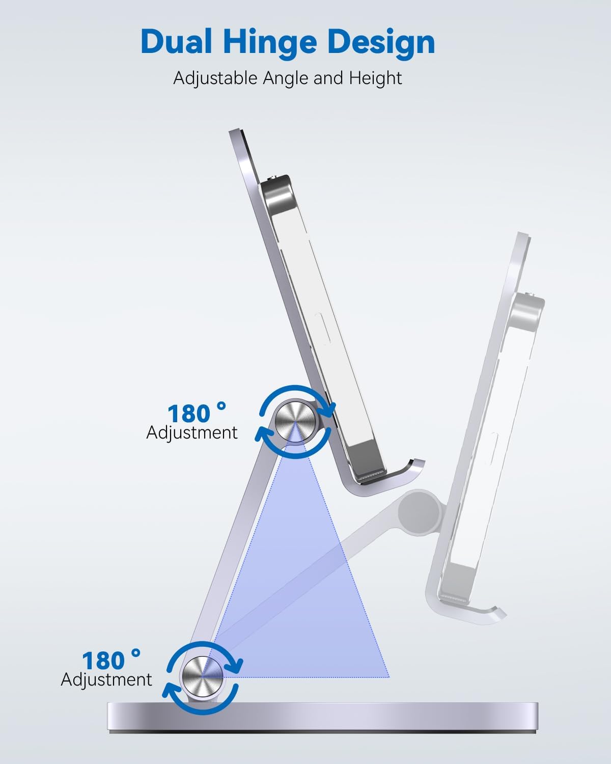 360 Rotating Phone Stand for Desk, Dual-Adjustable Foldable Aluminum Desktop Phone Holder Compatible with iPhone 16 15 14 13 12 11 Series, iPad-Mini, 4-8" All Phones (Grey)