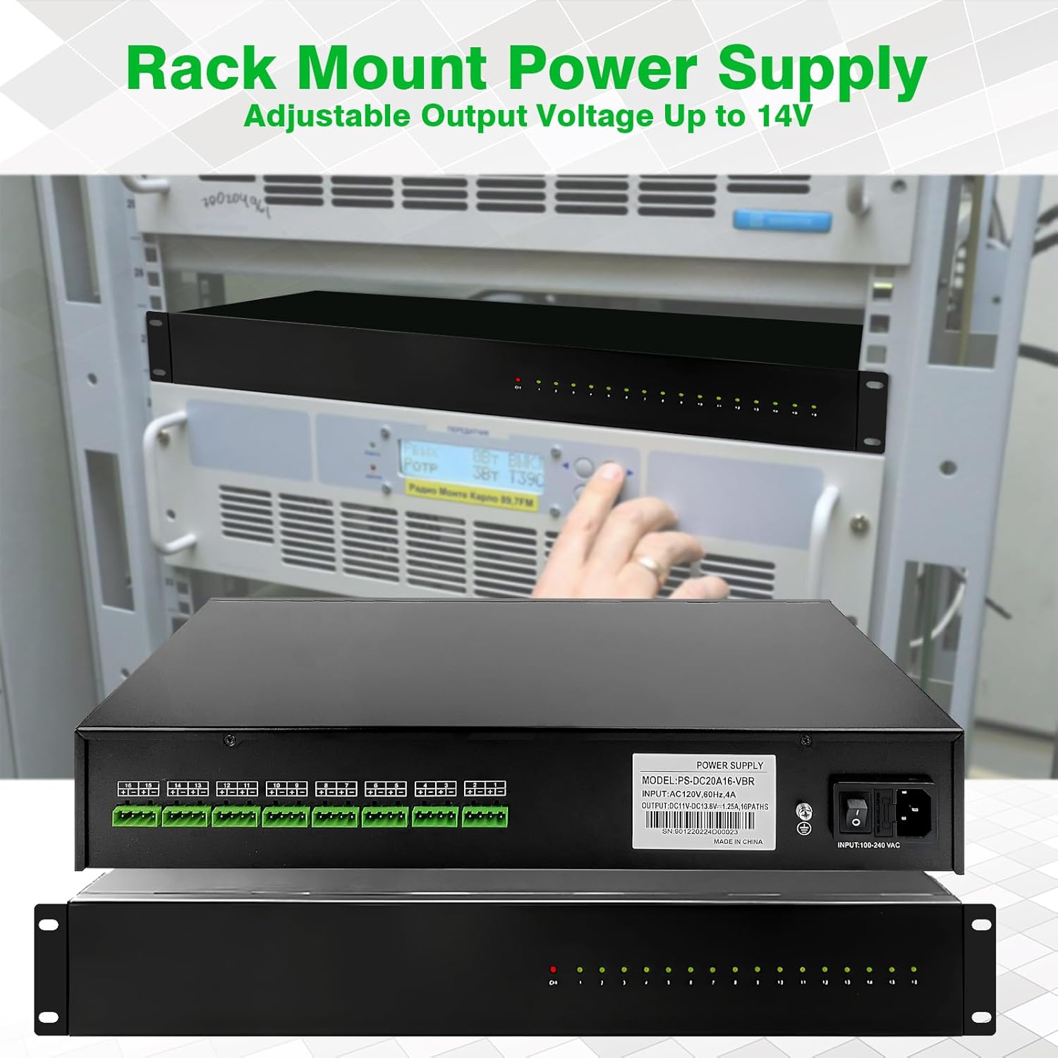 DC 16 Channel VBR CCTV 12V 20A Distributed Power Supply Rack Mount, PTC Reset Fuse,(UPS) Uninterruptible Power Supply System Function,Adjustable Output Voltage,for Security Cameras, DVR,NVR