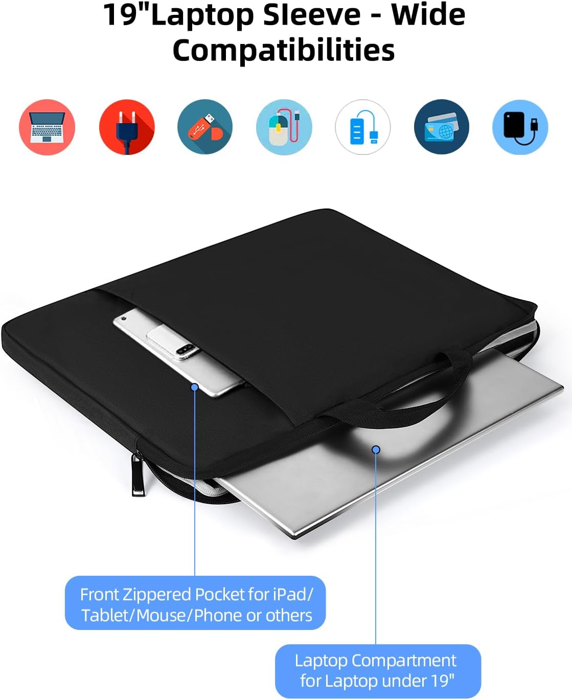 EVICIV Laptop Sleeve Case 19 inch, 360° Protective Handbags Portable Computer Cover Bag with Pocket Zipper for 17-19 inch Monitor Laptop HP Dell Lenovo Surface Notebook PC Books (Black)
