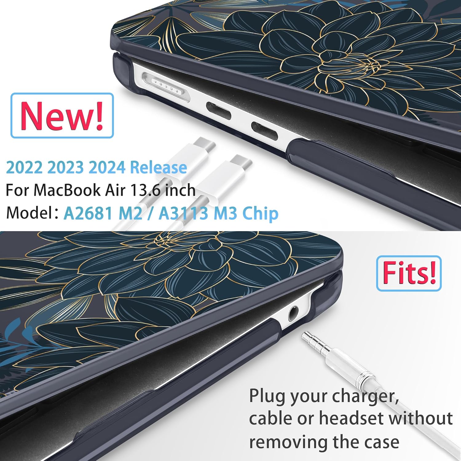 Mektron for 2025 M4 MacBook Air 13.6 Inch A3240 Case Fits 2023 A2681 M2 2024 A3113 M3 Chip with Liquid Retina Display, Printed Plastic Hard Shell Cover for MacBook Air 13.6", Dahlia Flower C035