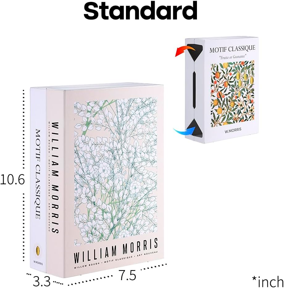 Book Shape Decorative Cable Management Box - Expandable Cable Organizer Box with Magnetic Closure for Home & Office (William Morris, Standard)