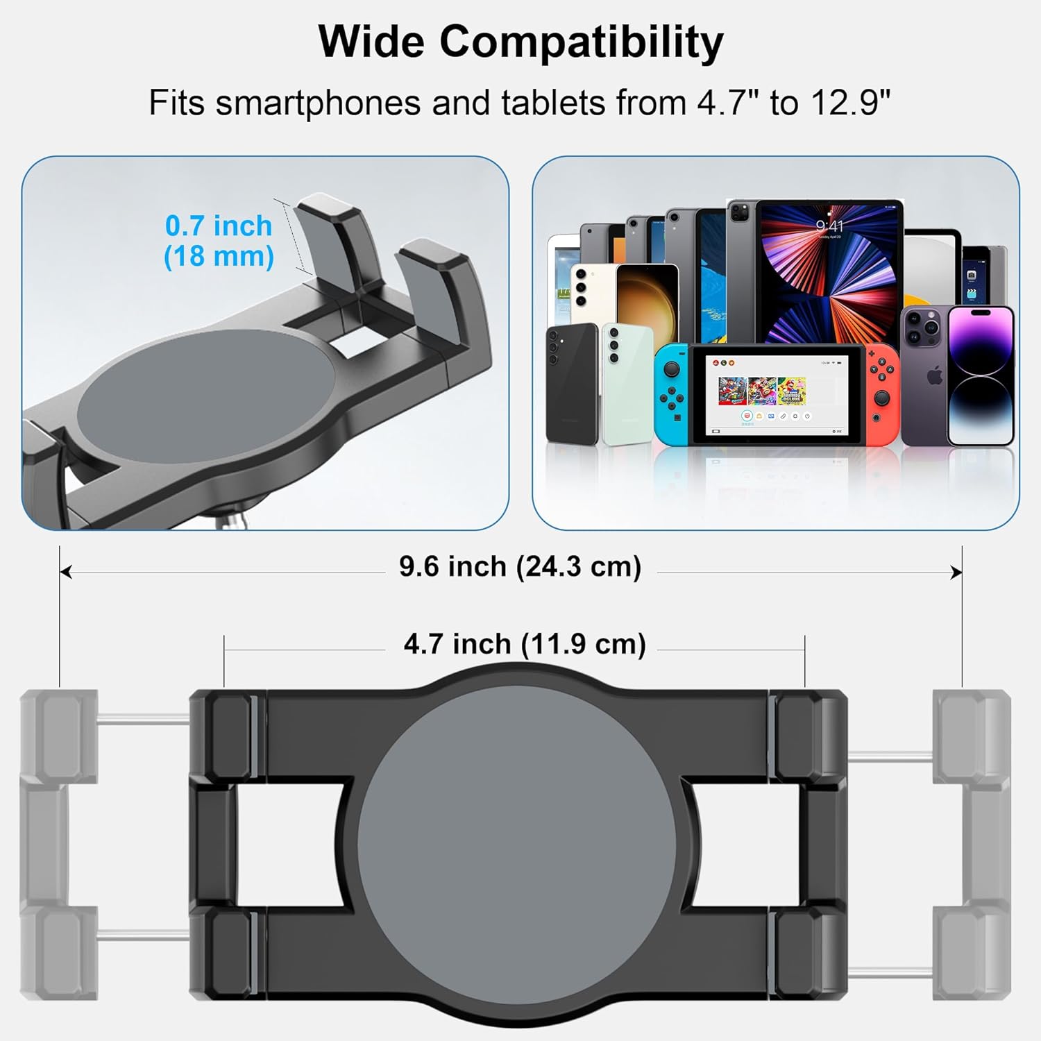 - Robust Tablet Mount: Our versatile iPad holder for truck and car interiors adjusts to hold devices from 4.7 to 12.9 inches securely. Whether it's an iPad Pro, Air, Mini, iPhone, or Samsung Galaxy Tab, this iPad mount for truck is the trusted companion for truck drivers, sailors, and commuters.