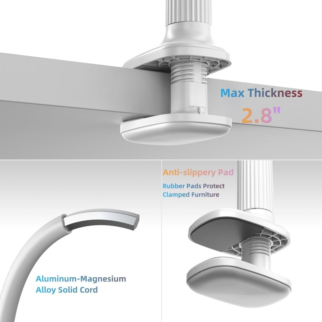 - 【Enhanced Durability】Featuring a sturdy clip base for stable mounting without vibrations, our stand is both flexible and durable, capable of withstanding repeated bends. Designed with strength in mind, use both hands to adjust it effortlessly. Moreover, the Claw Clamp offers 360-degree adjustability, allowing you to find the most comfortable viewing angle for your cellphone.