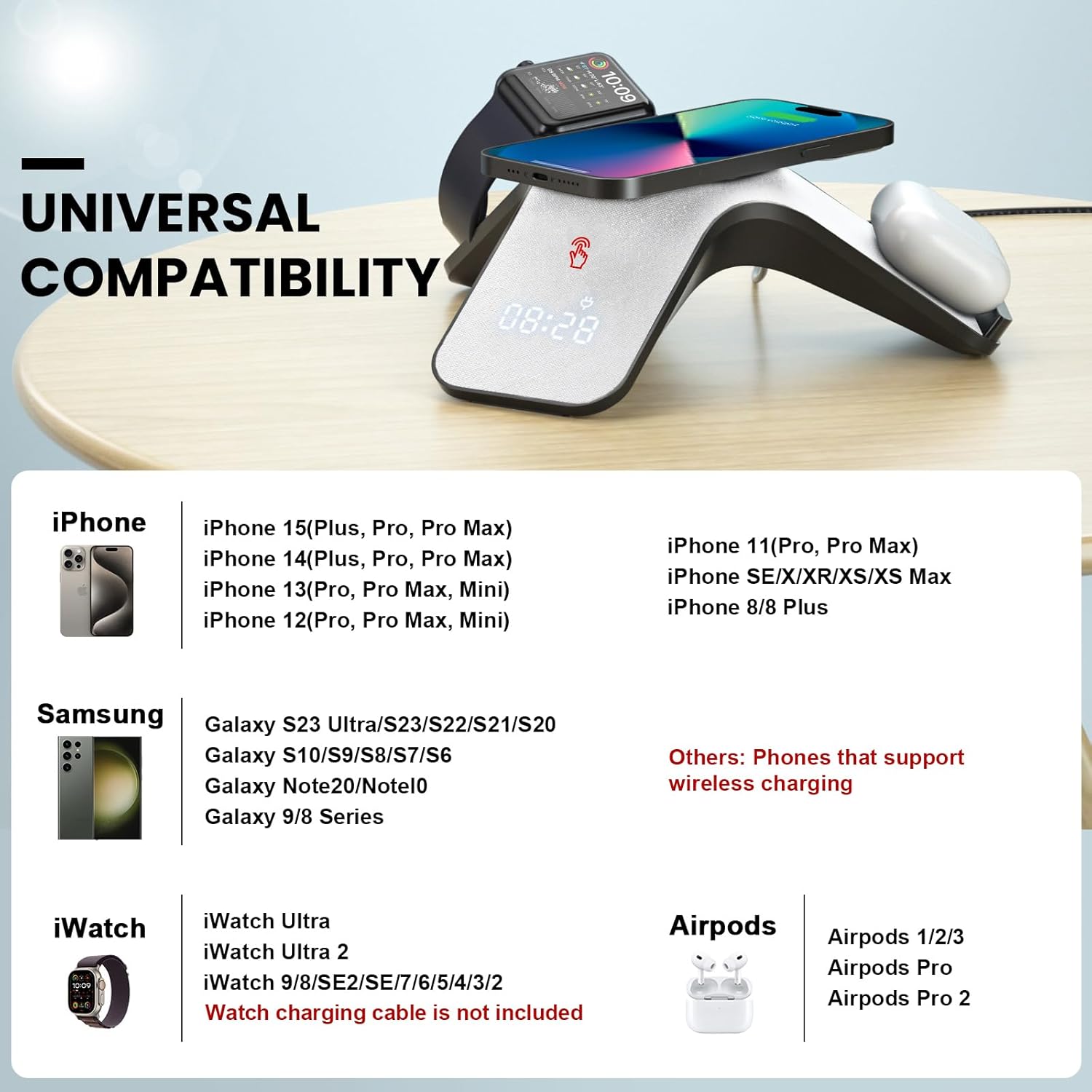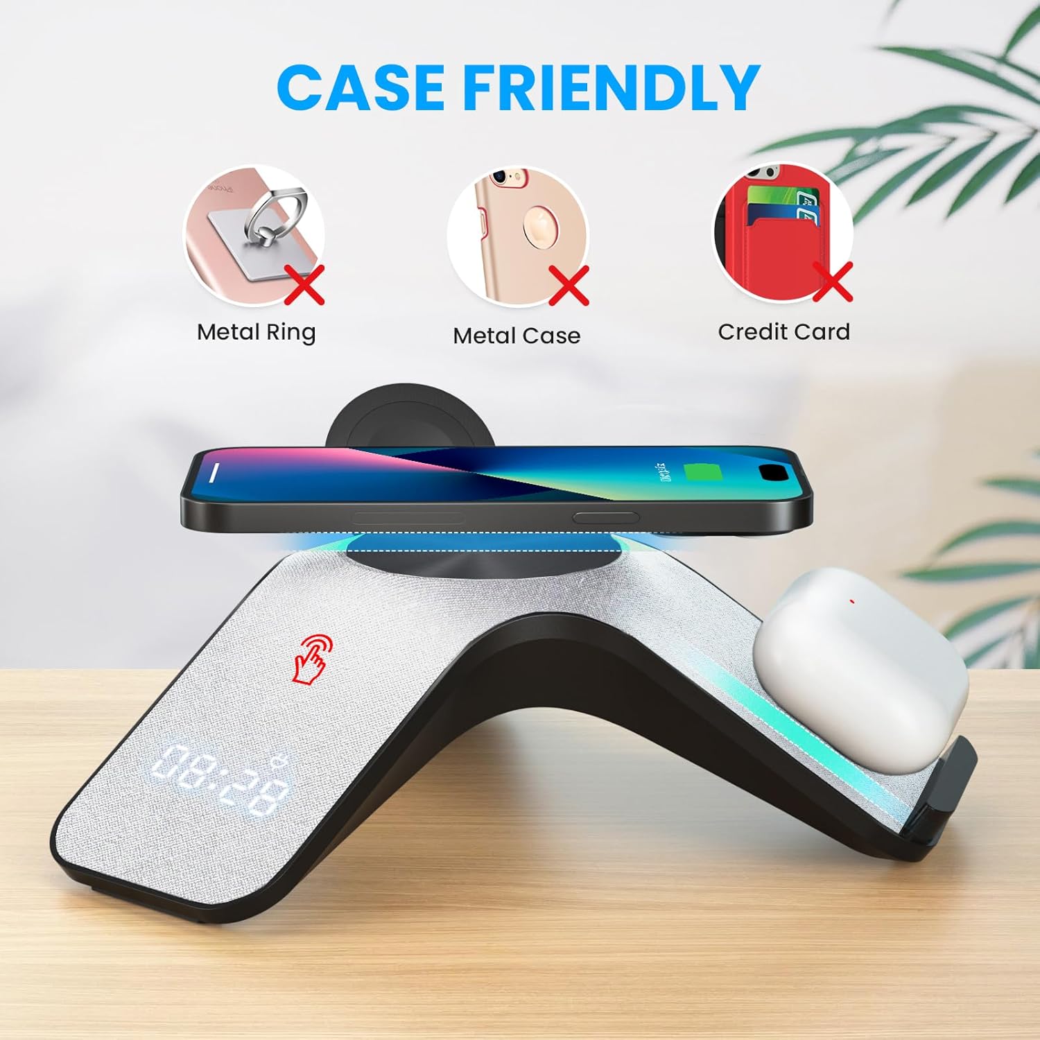 - 【15W Fast Wireless Charger】This 5-in-1 wireless charging station provides fast and efficient charging for your mobile phone, saying goodbye to cluttered wires on your desk.