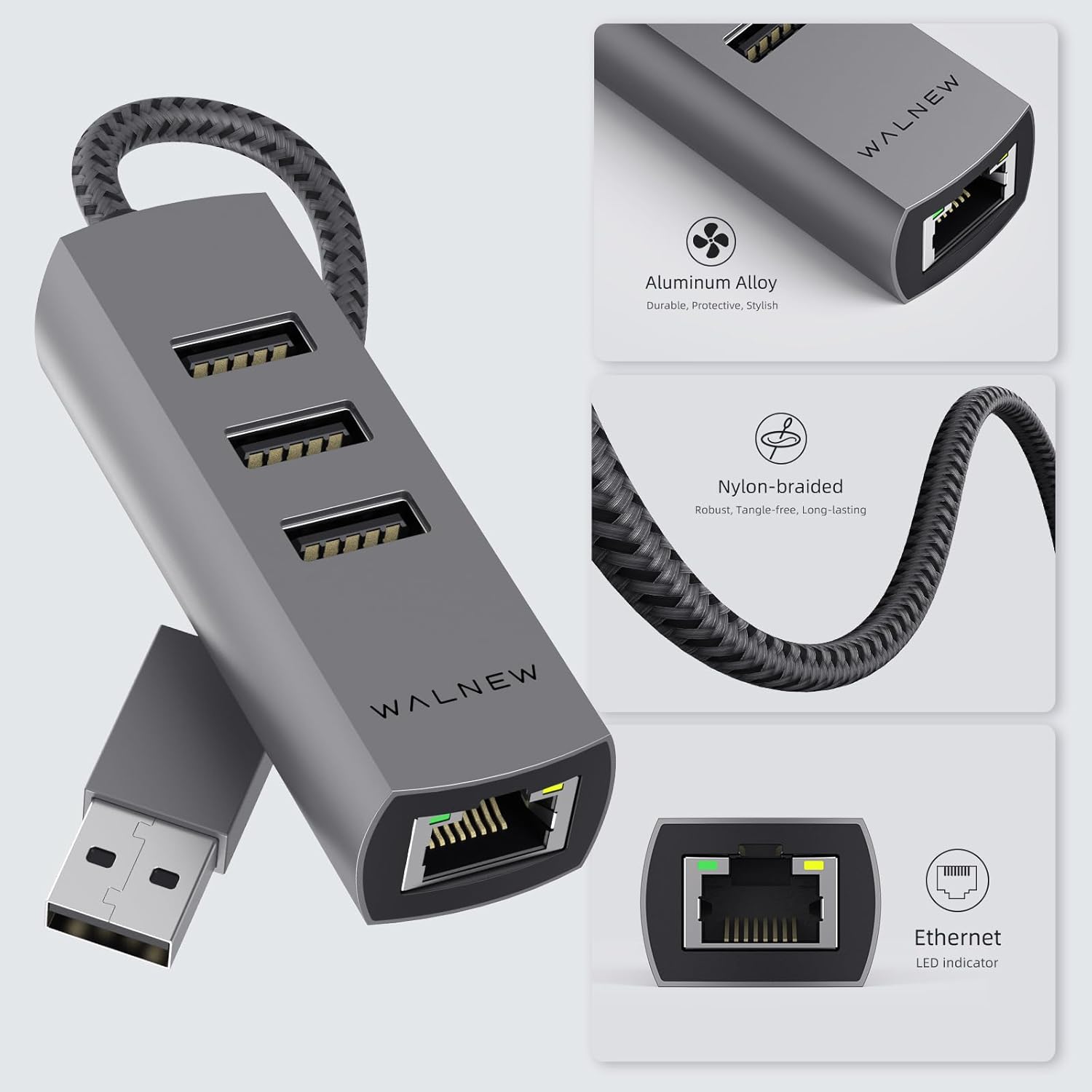 - 【LAN to USB-C Adapter Wide Compatibility】WALNEW USB-C Ethernet Adapter is compatible with MacBook Pro 16''/15''/13''(2020/2019/2018/2017/2016), MacBook Air 13''(2020/2018), MacBook (2019/2018/2017/2016/2015), iPad Pro (2021/2020/2018); iPad Air 4 2020, Dell XPS 13/15/17; Microsoft Surface Pro 7/Surface Laptop 3/Surface Book 2/Surface Go, Google Pixel, Pixel 2; Asus ZenBook. Compatible with Samsung S20/S10/S9/S8/S8+, Note 10/9/8, Samsung Tab Pro and many other USB-C laptops, tablets, and phones