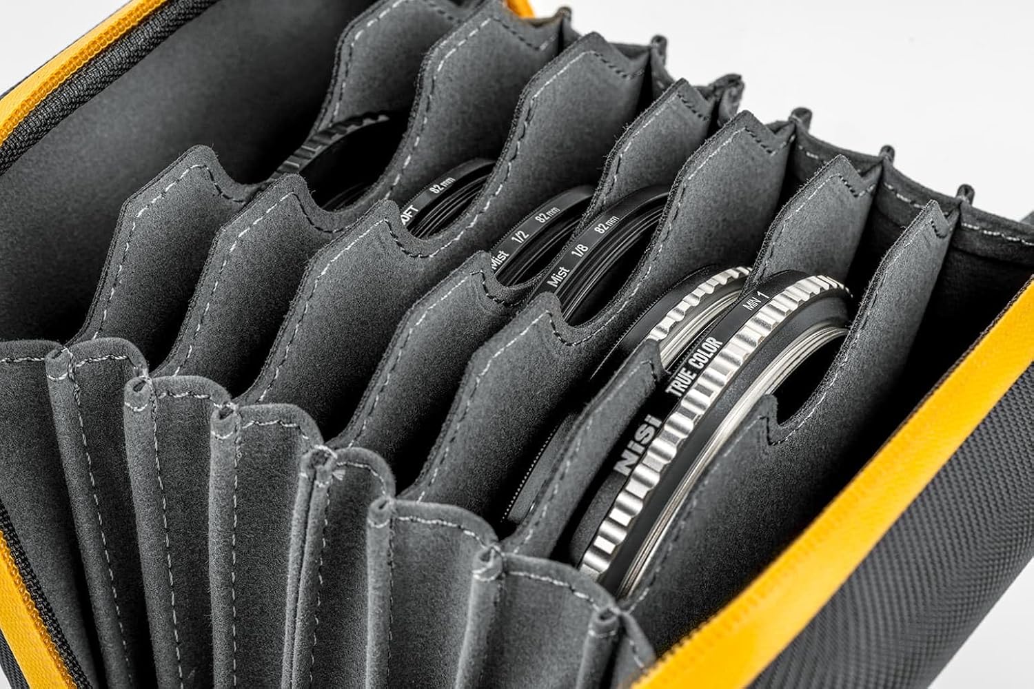 - COMPATIBILITY: This versatile Nisi Caddy II lens case photography solution offers 8 individual slots for camera filters up to 95mm. Perfectly accommodates essential filter types including CPL filters, UV filters, Neutral Density filters, and adapter rings. The specialized compartments fit various lens filter thicknesses while maintaining secure positioning. Your complete filter case works with all major photography brands, making it ideal for diverse equipment collections.