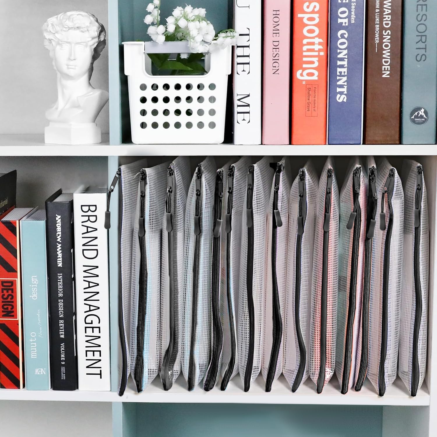 18 Pack A4 Mesh Zipper Pouch Bags, Zipper Pouches of Office Supplies, File Bags for Classroom Organization, Puzzles, Board Game Storage