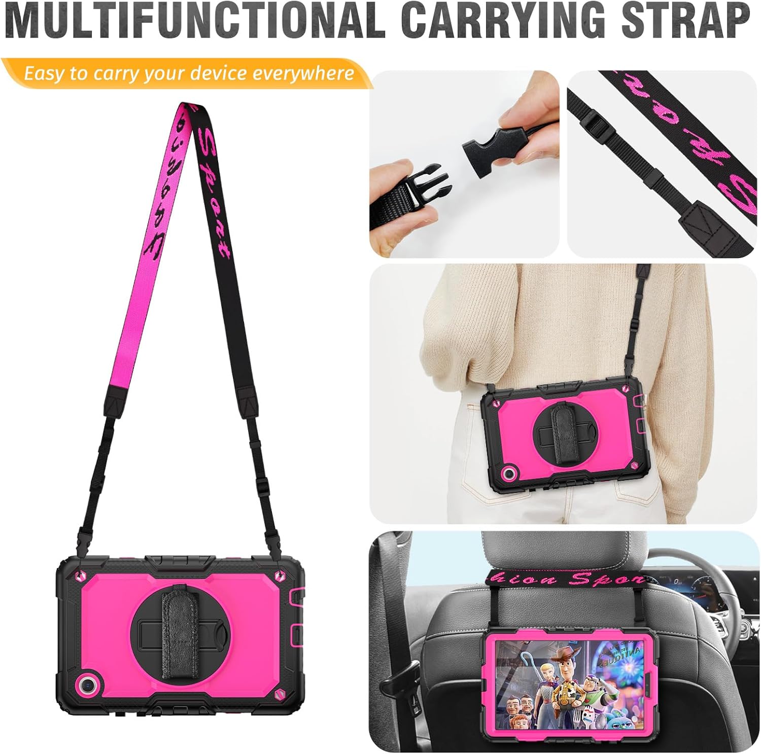 - Multifunctional Carrying Strap : The shoulder strap of this Samsung A9 tablet Case is detachable and adjustable, both kids and adults can use it to carry the tablet around during hiking, traveling or other activities outside. Also, you can also hang the tablet on the back of seat for fun when traveling in cars.